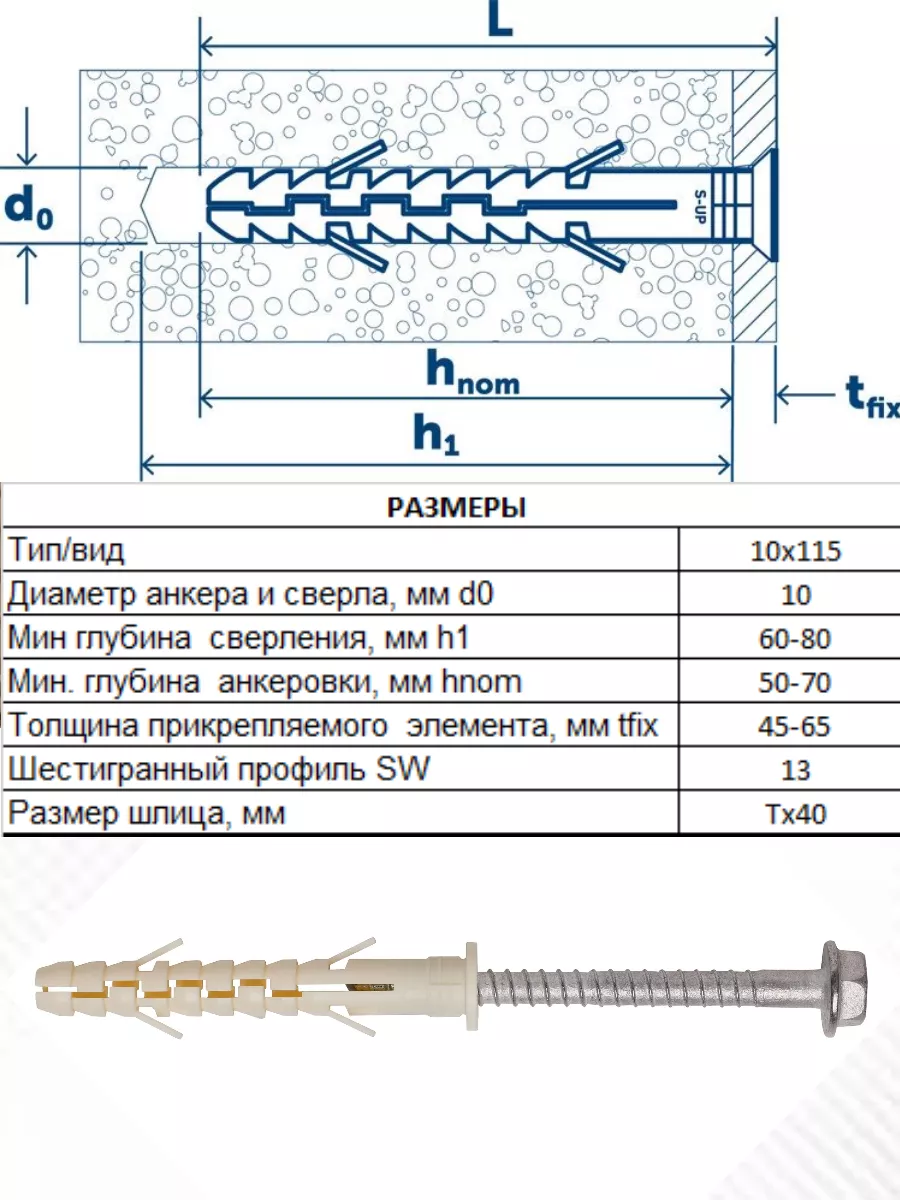 Тип анкераАнкер-шуруп