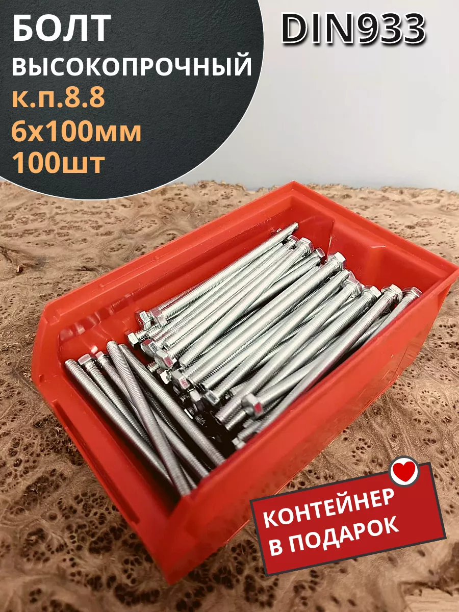 | Болт 6х100 полн. резьба ОЦ DIN933 к.п.8.8 (100шт) контейнер | бп6100прф100 | 1 шт. |