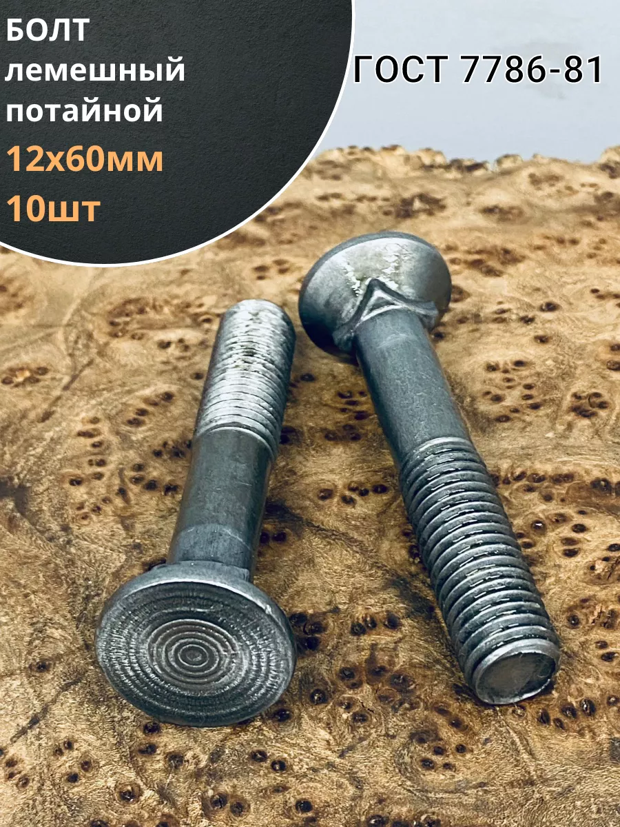 Болт лемешный высокопрочный потайной М12х60 Гост 7786,10 шт