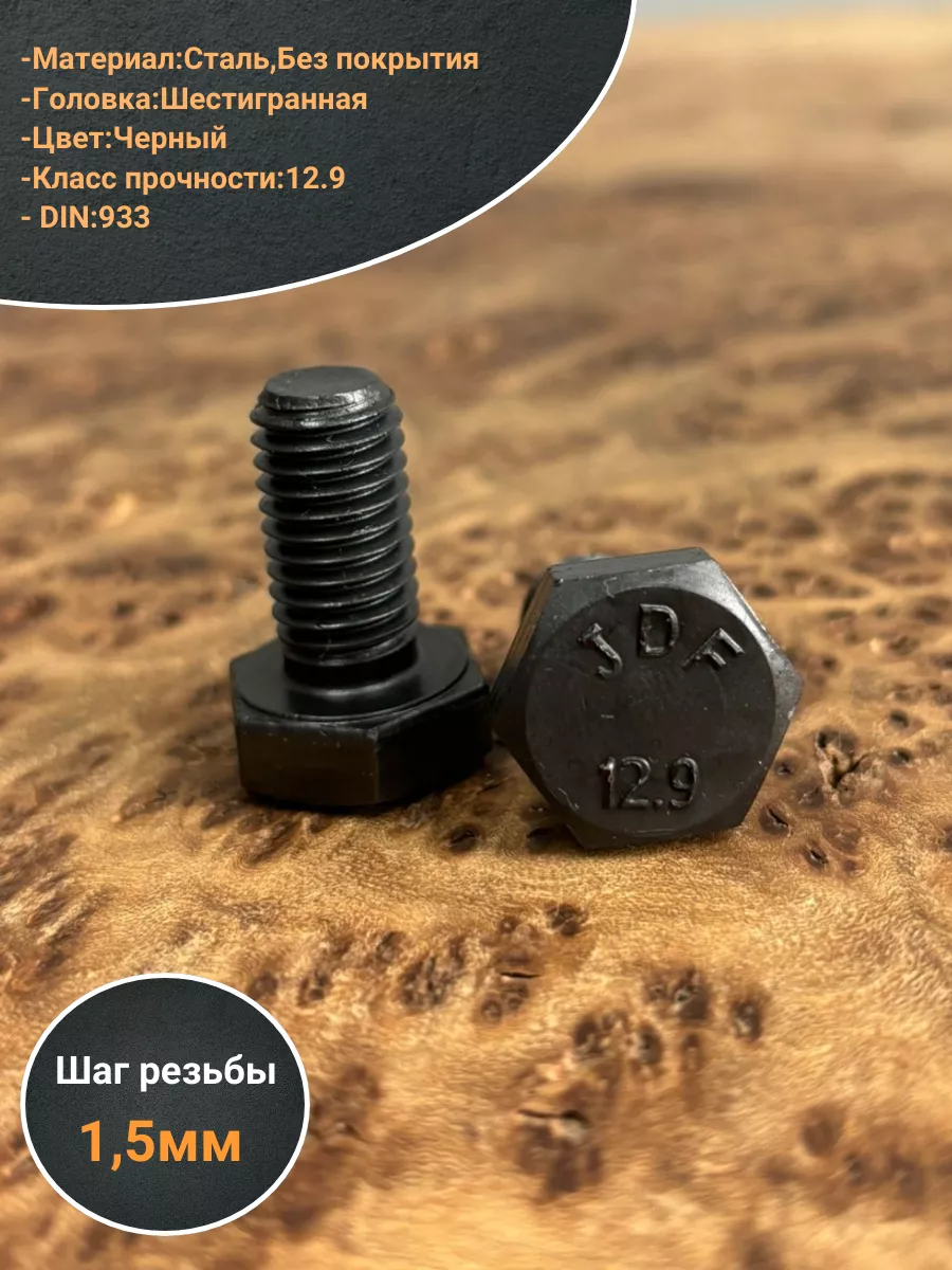 Болт высокопрочный 10х20 мм, DIN933 к.п.12.9 черный ,10шт.