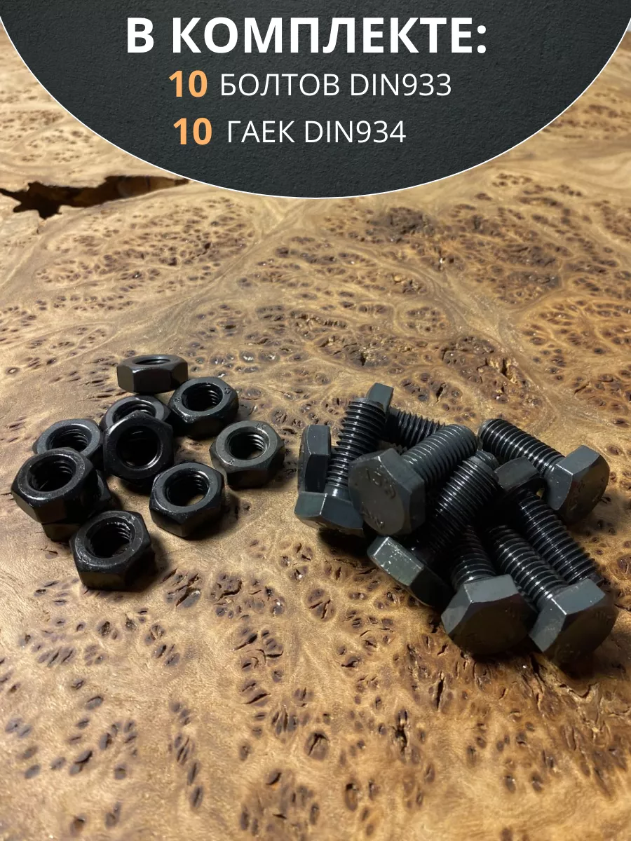 Болт М10х25 мм, DIN933,высокопрочный к.п.12.9 с гайкой,10шт