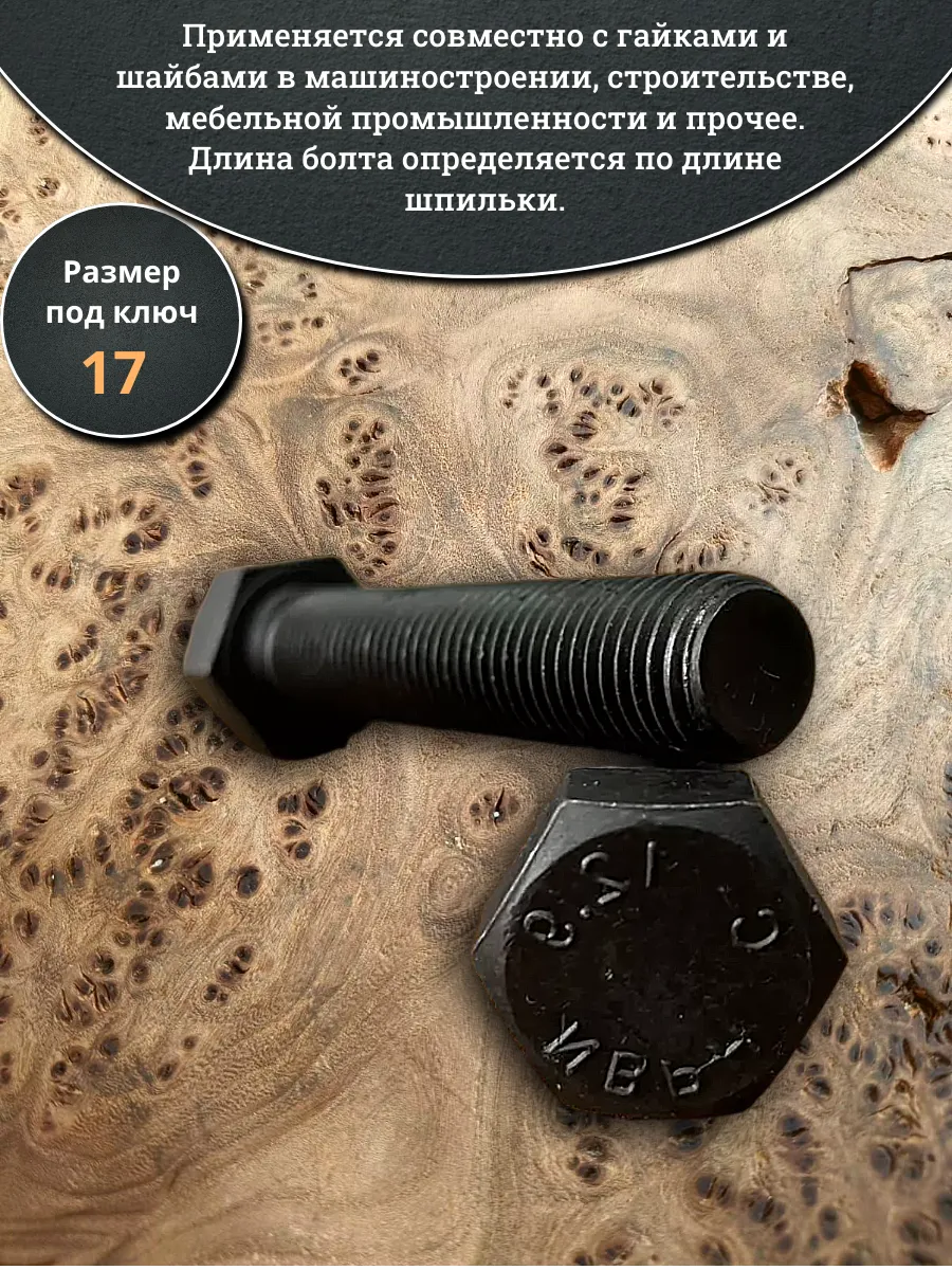 Болт высокопрочный 10х70 мм, DIN933 к.п.12.9 черный ,10шт.