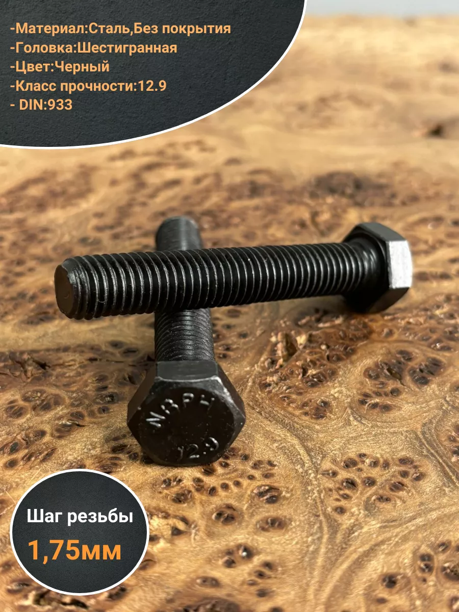 Болт высокопрочный 12х70 мм, DIN933, к.п.12.9 черный, 2шт.