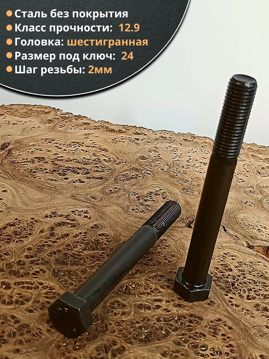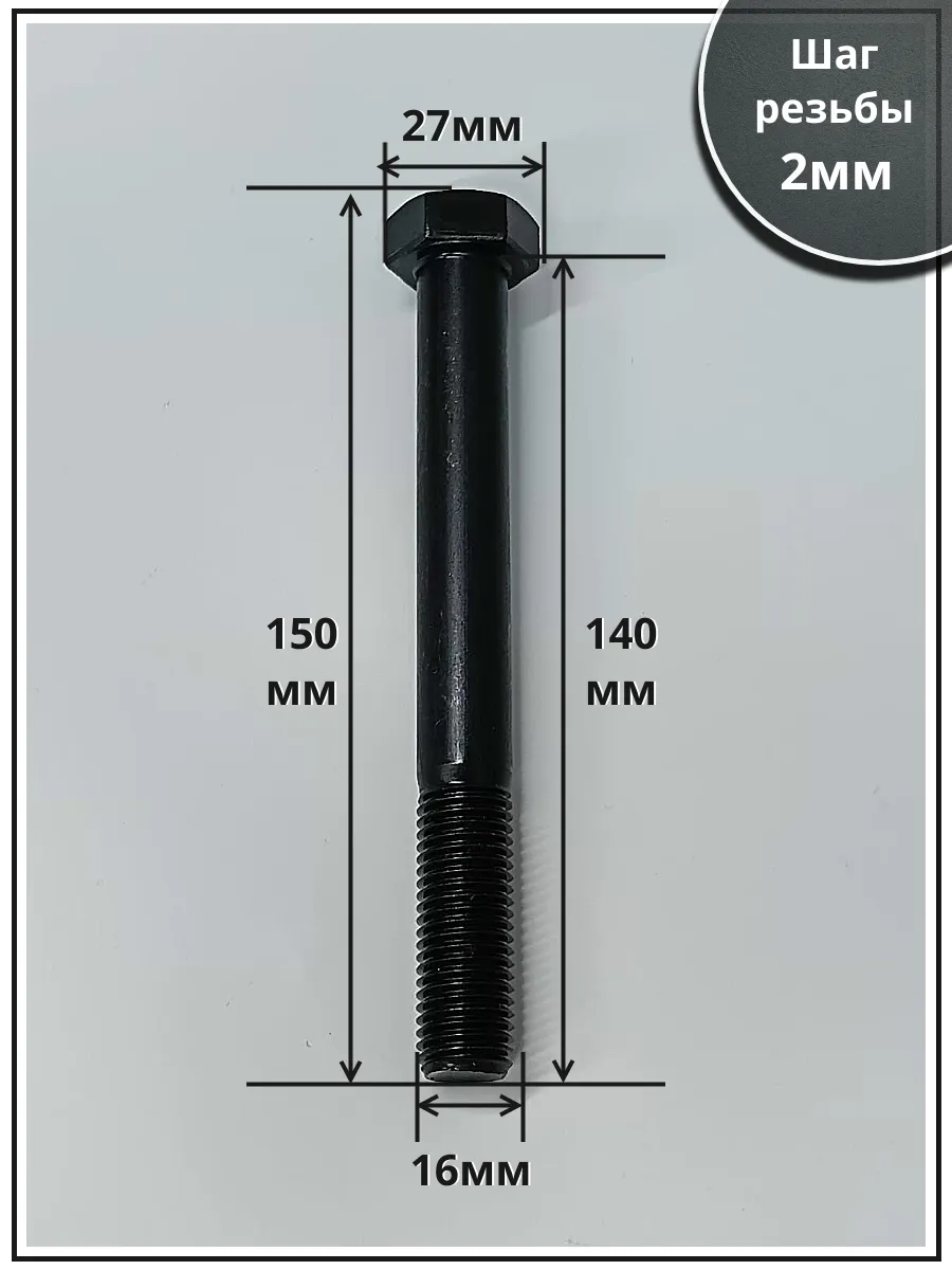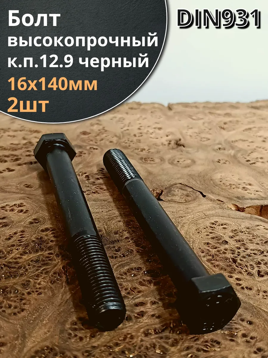 Болт высокопрочный М16х140 мм, DIN931, к.п.12.9 черный ,2 шт