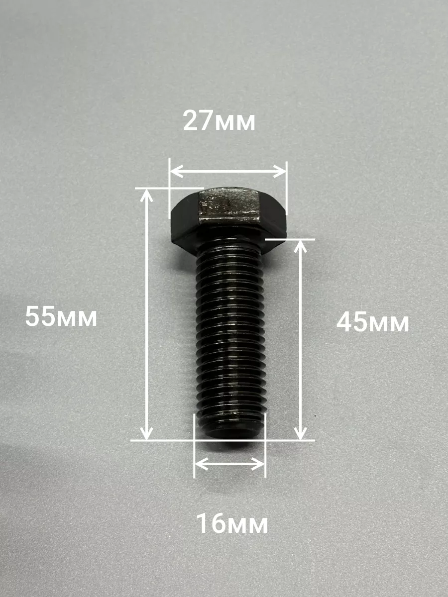 Болт высокопрочный 16х45 мм, DIN933, к.п.12.9 черный ,2 шт
