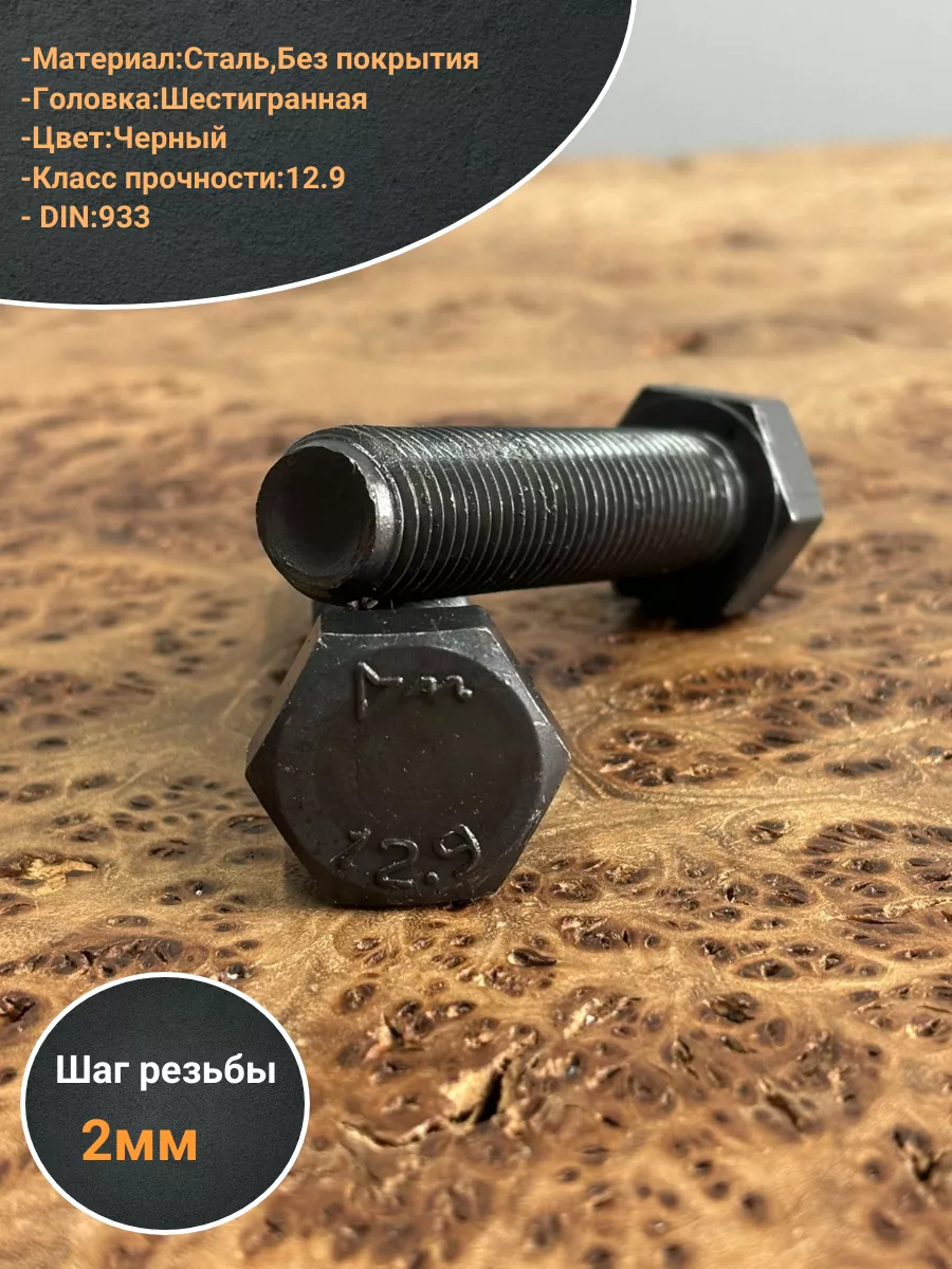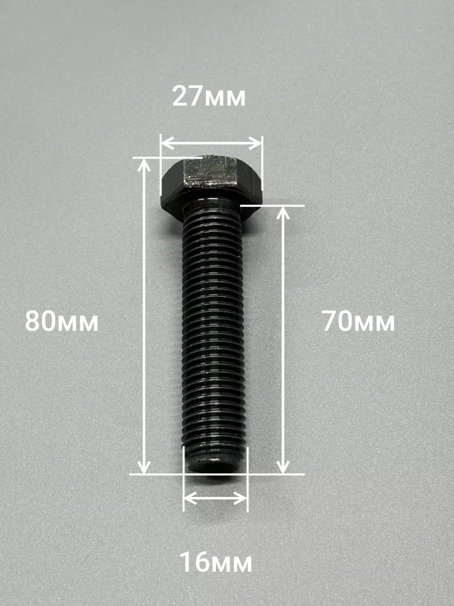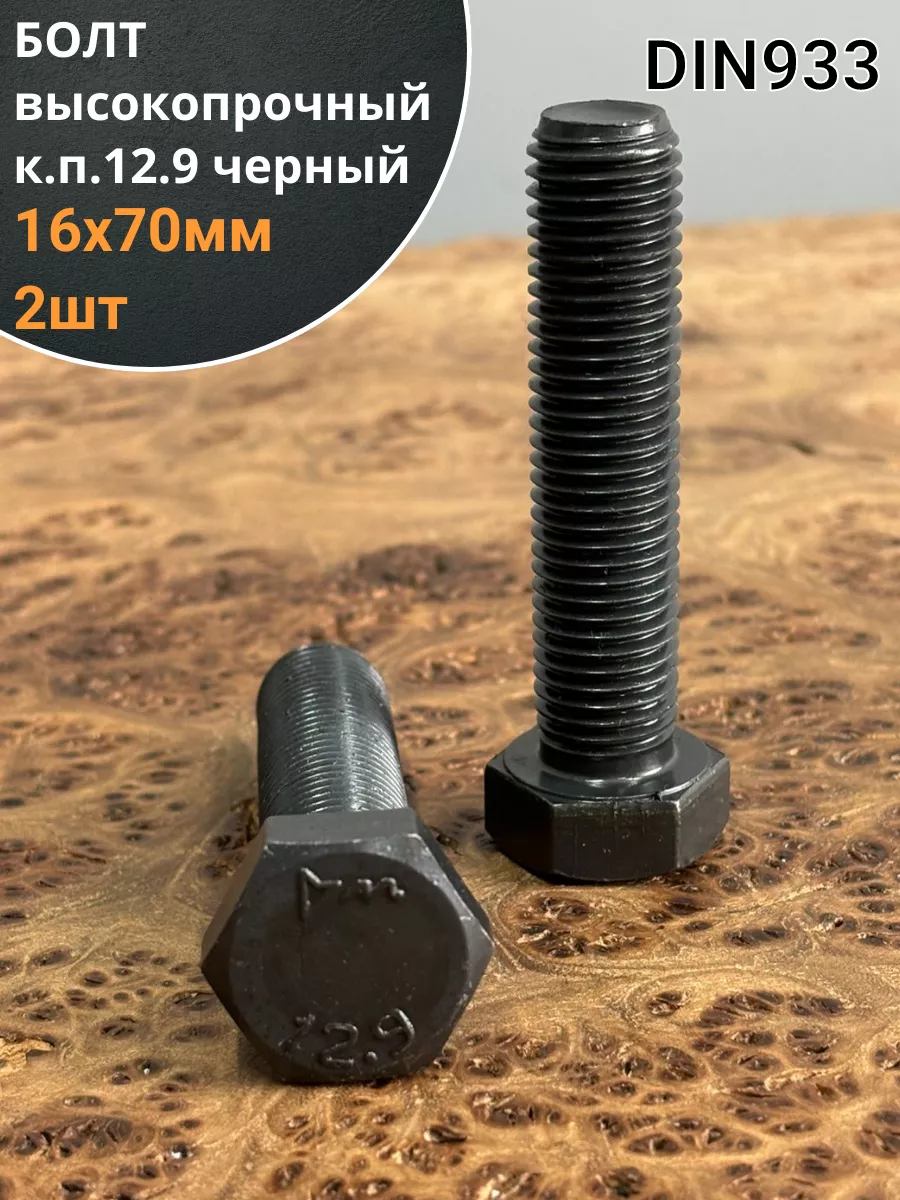 Болт высокопрочный 16х70 мм, DIN931, к.п.12.9 черный , 2 шт
