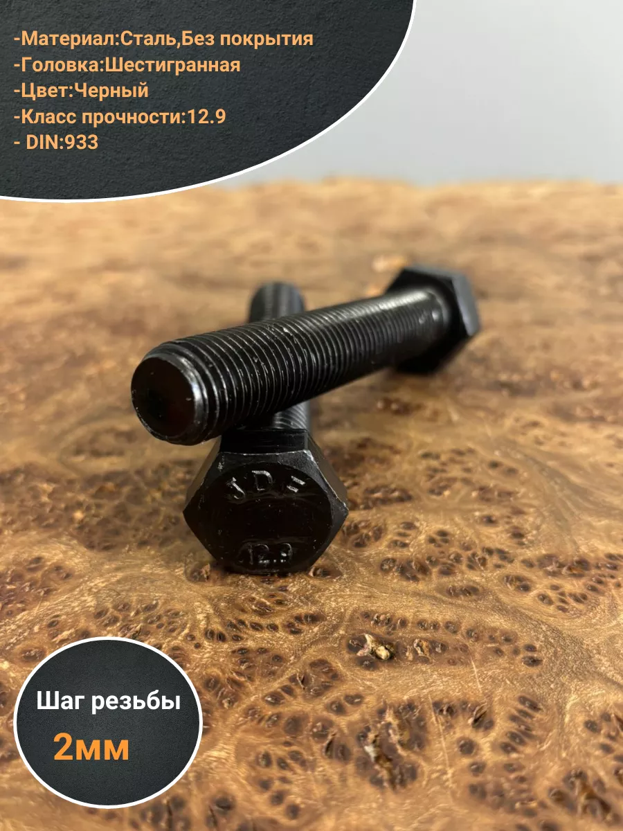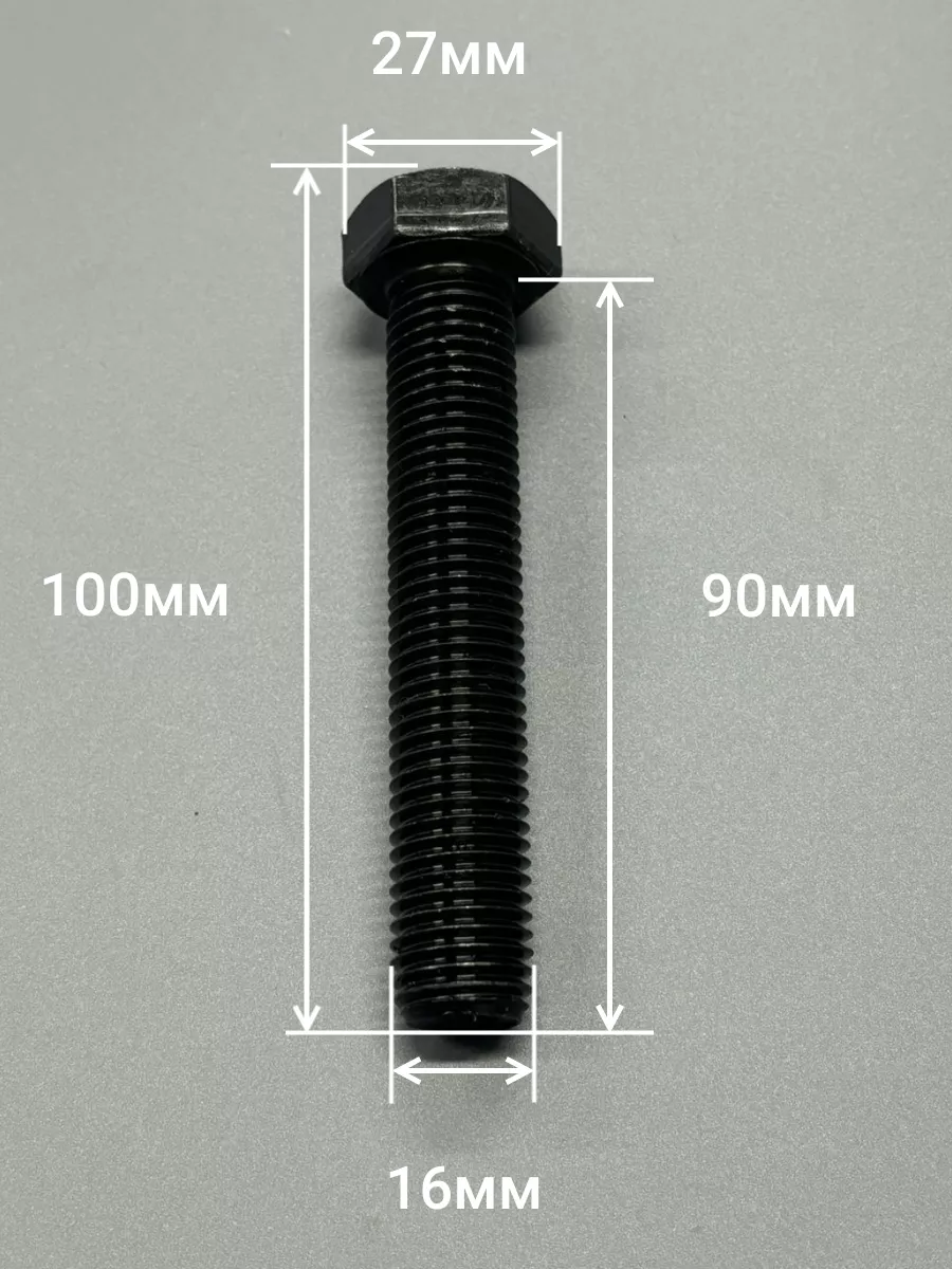 Болт высокопрочный 16х90 мм, DIN933, к.п.12.9 черный ,2 шт