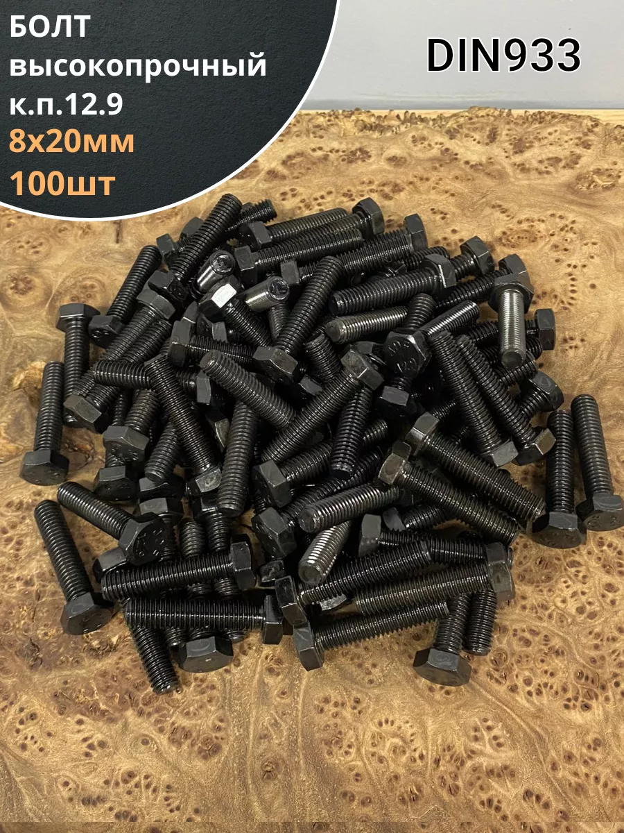 | Болт М8х20 мм, DIN933, высокопрочный к.п.12.9, 100шт | 11253 | 1 шт. |