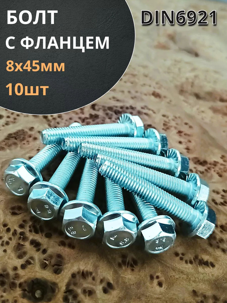 | Болт М8х45 с фланцем к.п.8.8 ОЦ DIN6921, (10 шт.) | 8869210845 | 1 шт. |