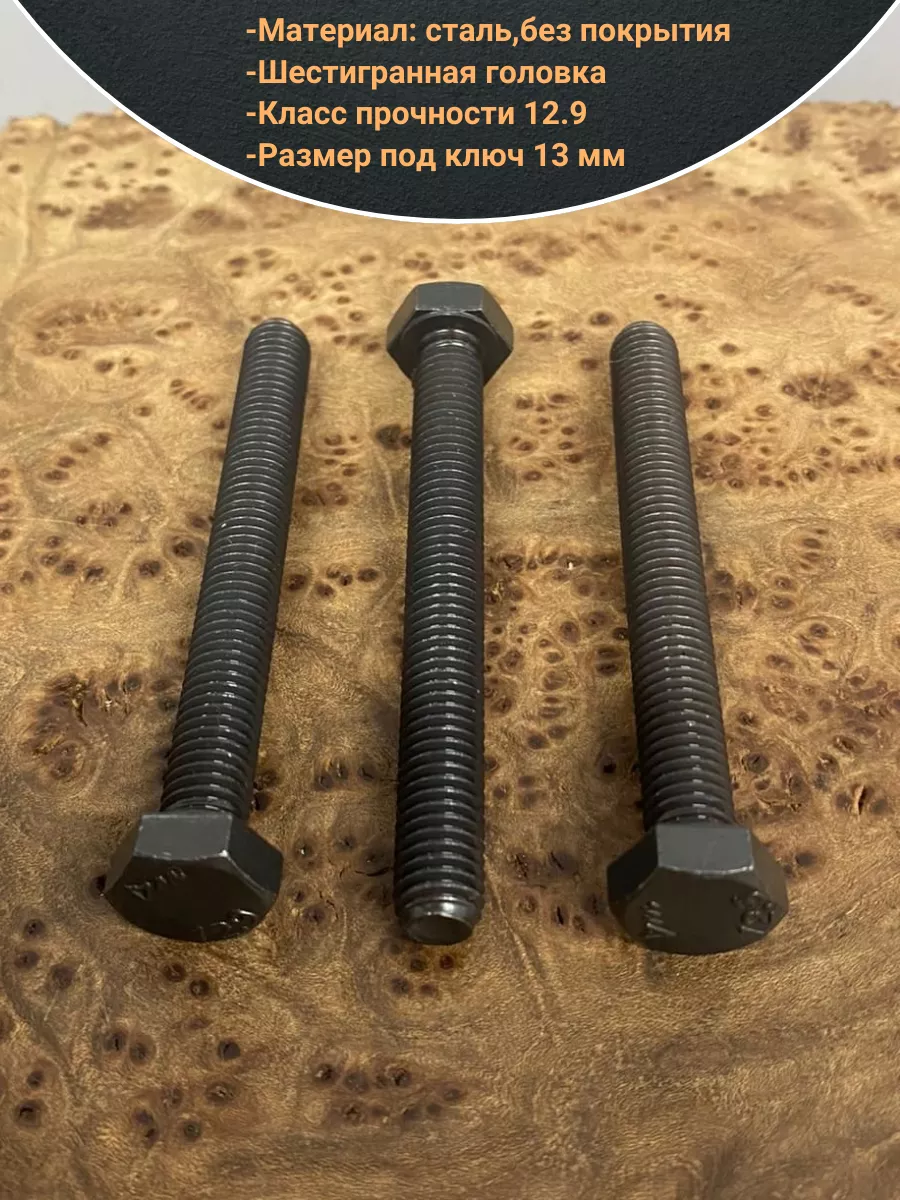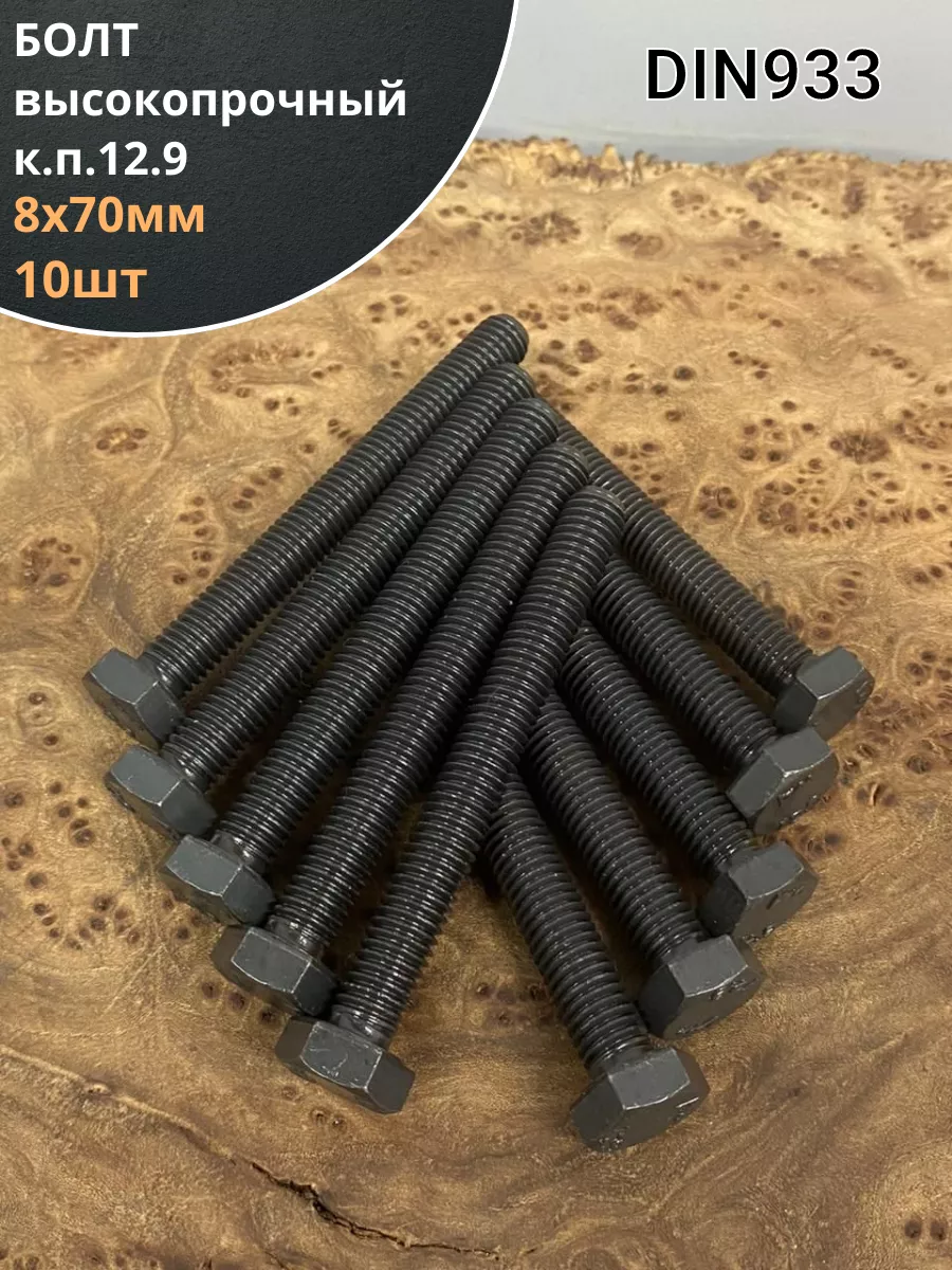 Болт М8х70 мм, DIN933, высокопрочный 12.9, 10шт.