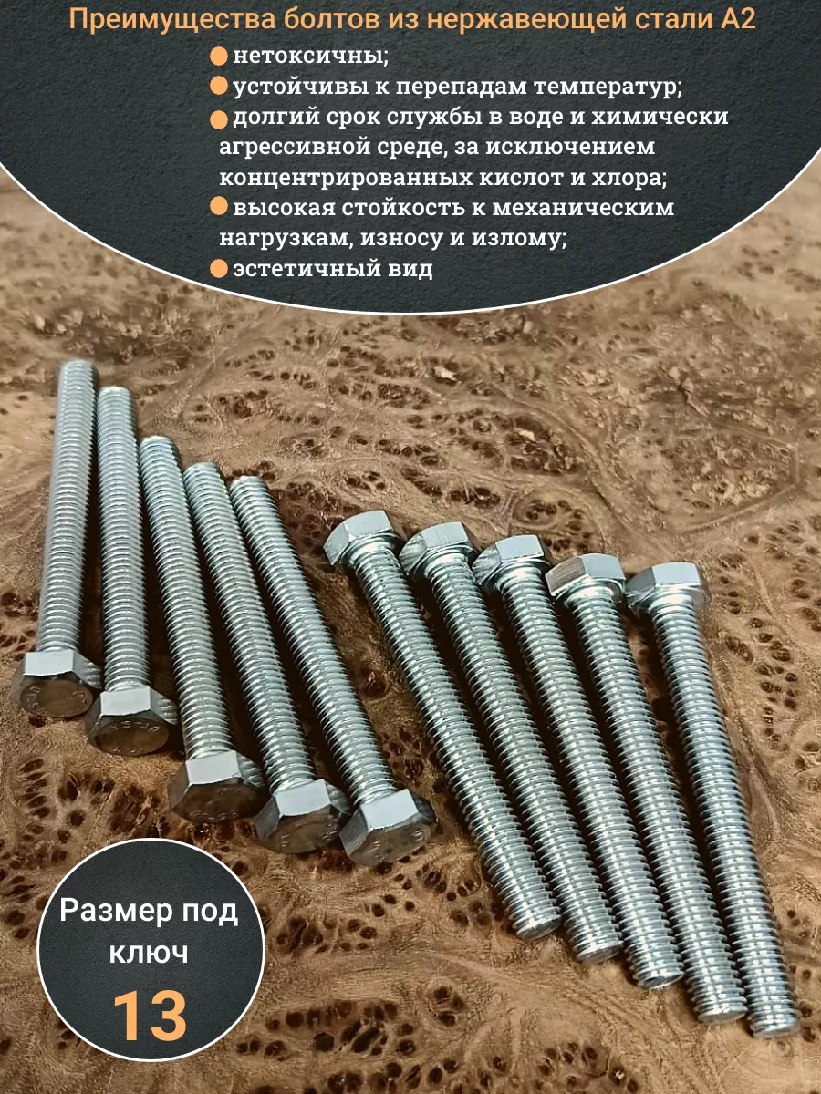 Болт нержавеющая сталь М8х70 А2 DIN933 10 шт