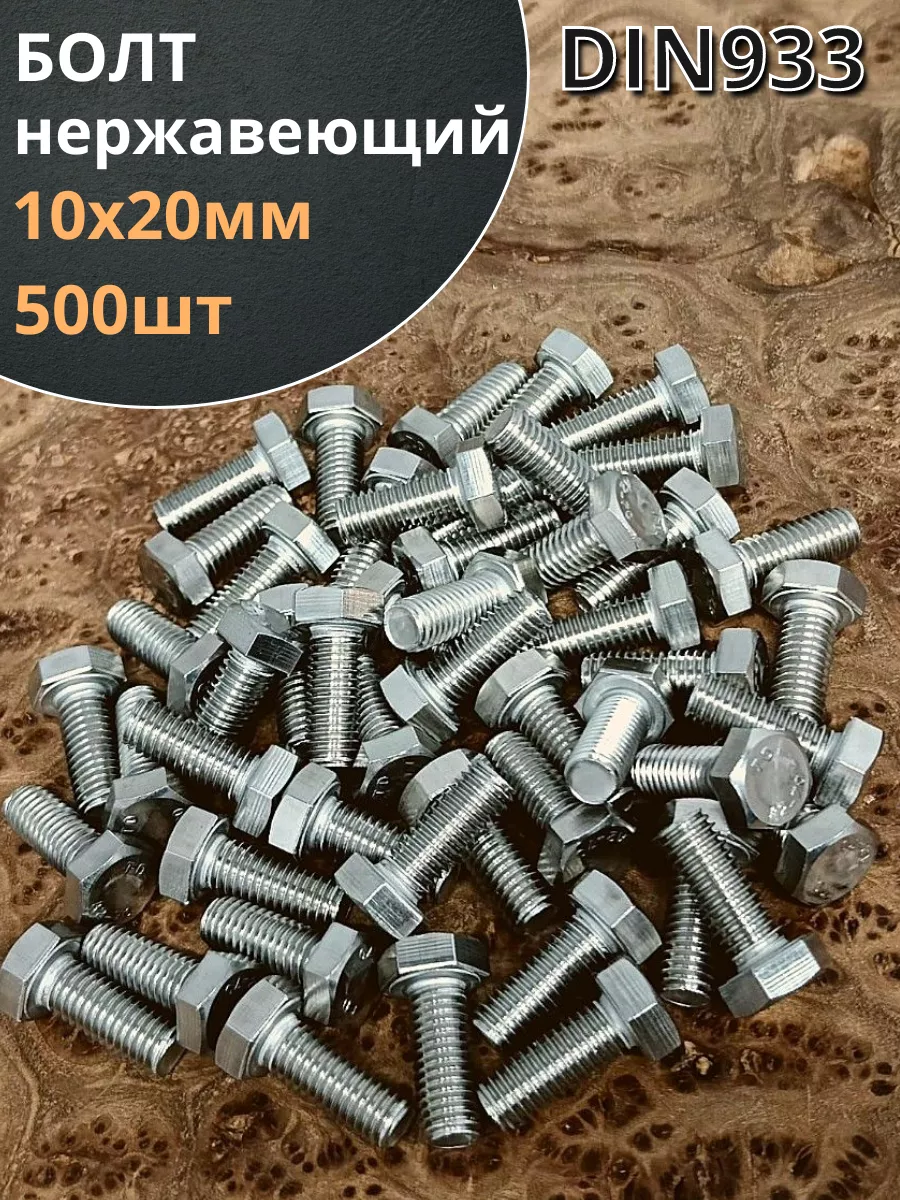 Болт нержавеющий 10х20 мм DIN933 500шт.