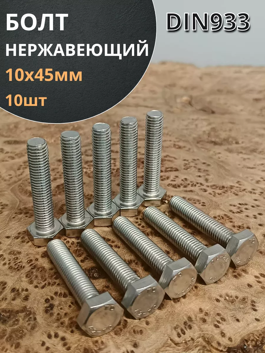 Болт нержавеющий 10х45 мм DIN933 10шт