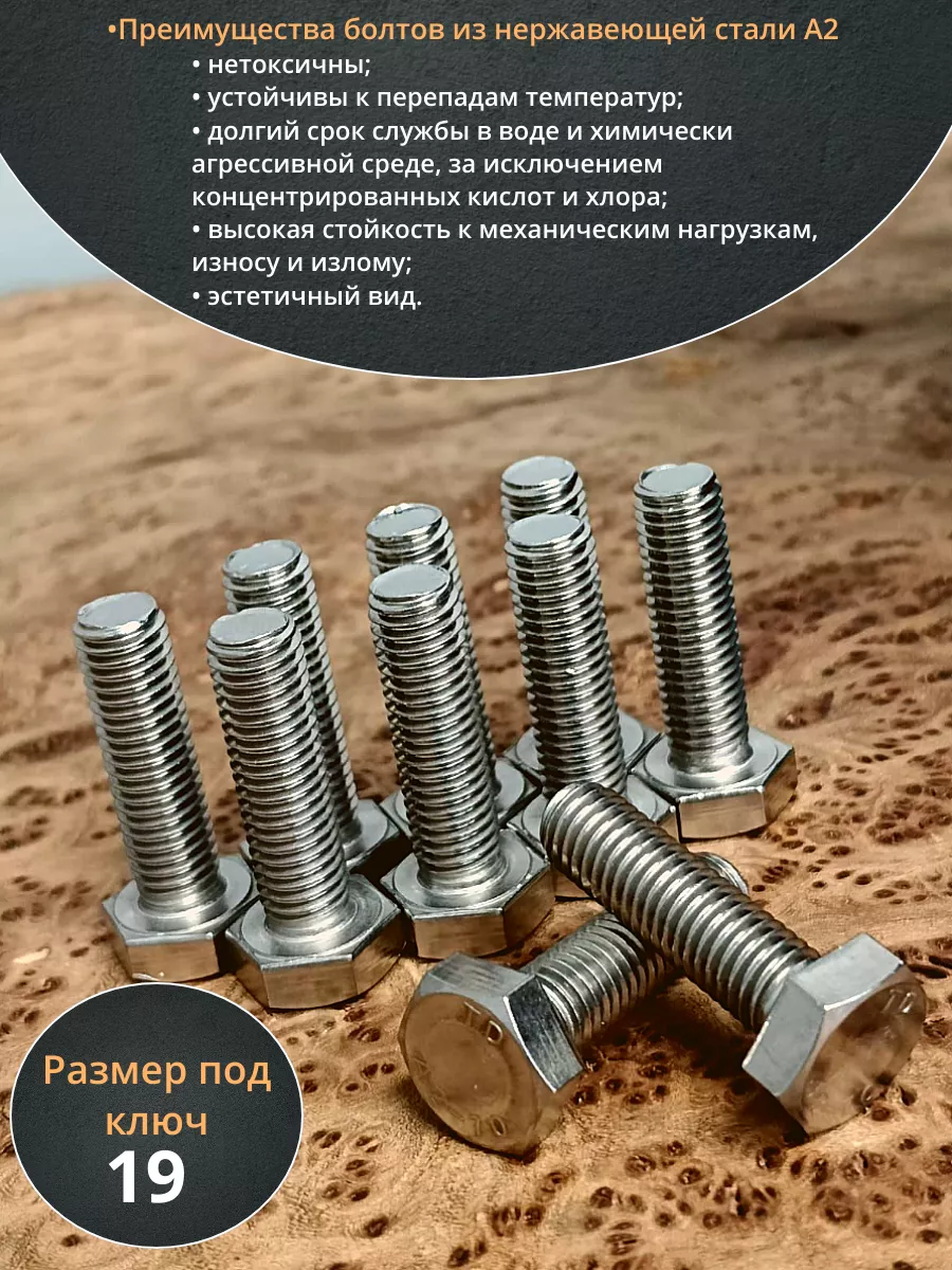 Болт нержавеющий 12х25 мм DIN933 10шт
