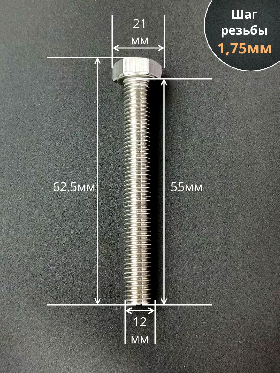 Болт нержавеющий 12х55 мм DIN933 10шт