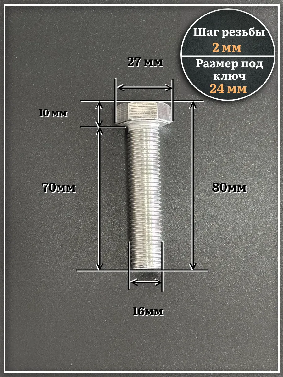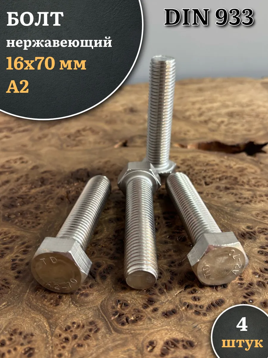 Болт нержавеющий М16х70 А2 DIN933, 4 шт.