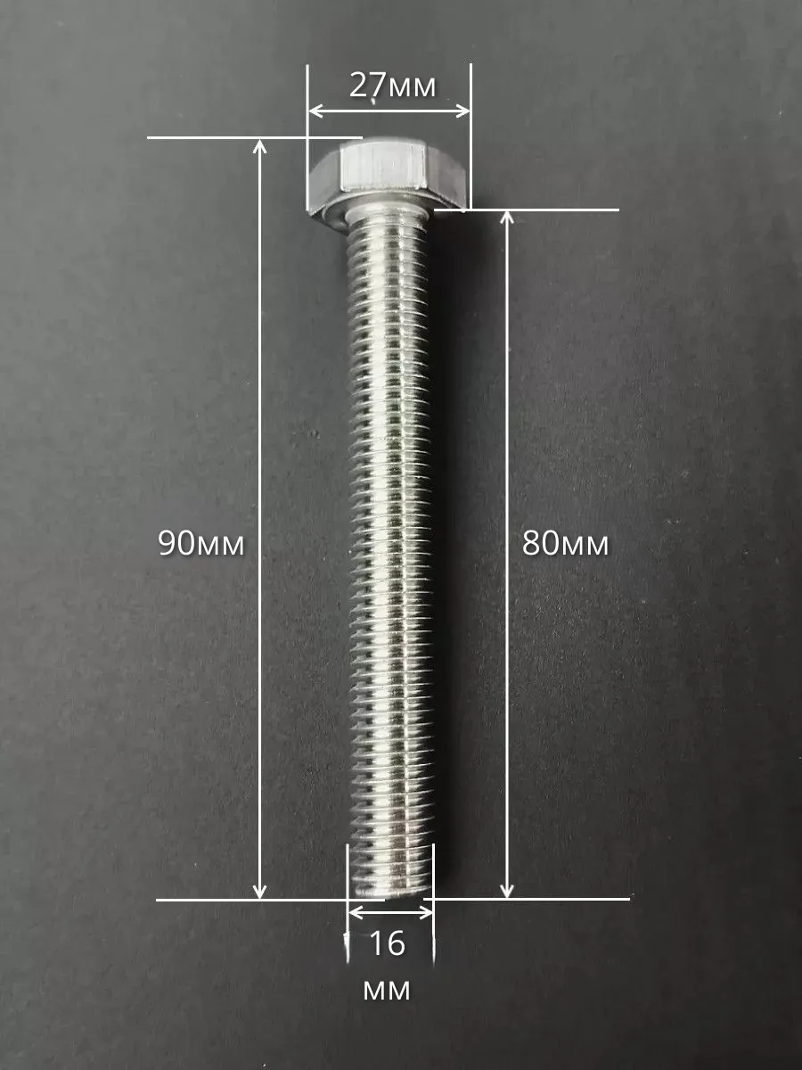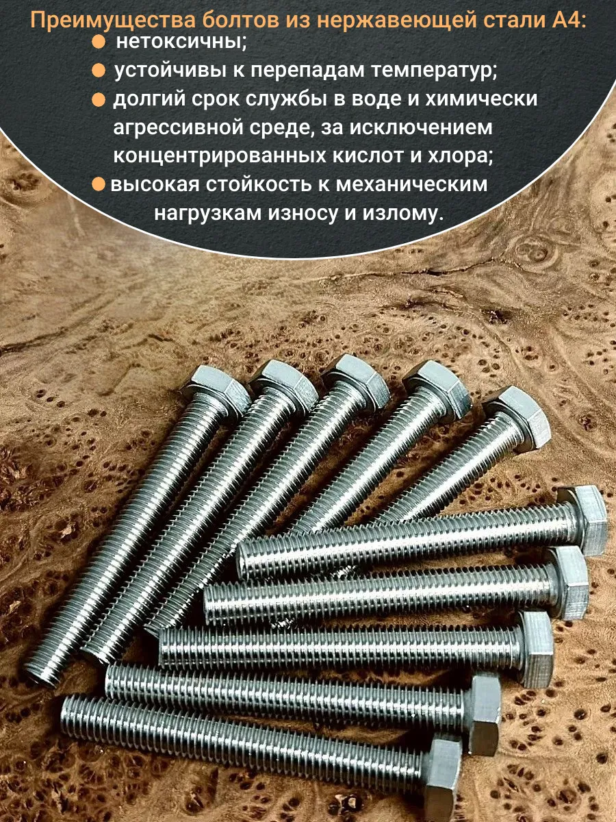 Болт нержавеющий 16х80 мм А4 DIN933, 10 шт.