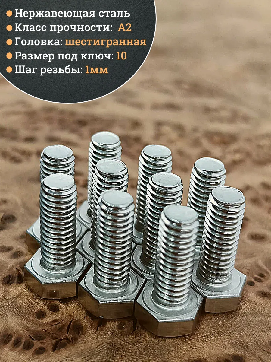 | Болт нержавеющий 6х16 мм DIN933 10шт | АС1300601693D07 | 1 шт. |