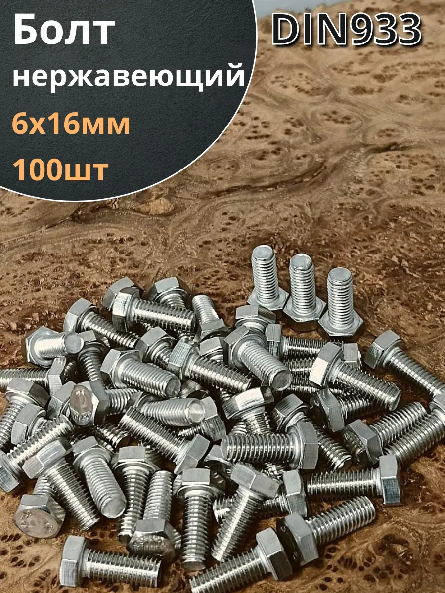 Болт нержавеющий 6х16 мм DIN933 100шт