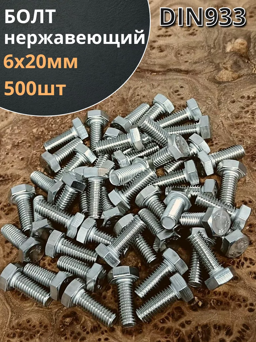 Болт нержавеющий 6х20 мм DIN933 500шт