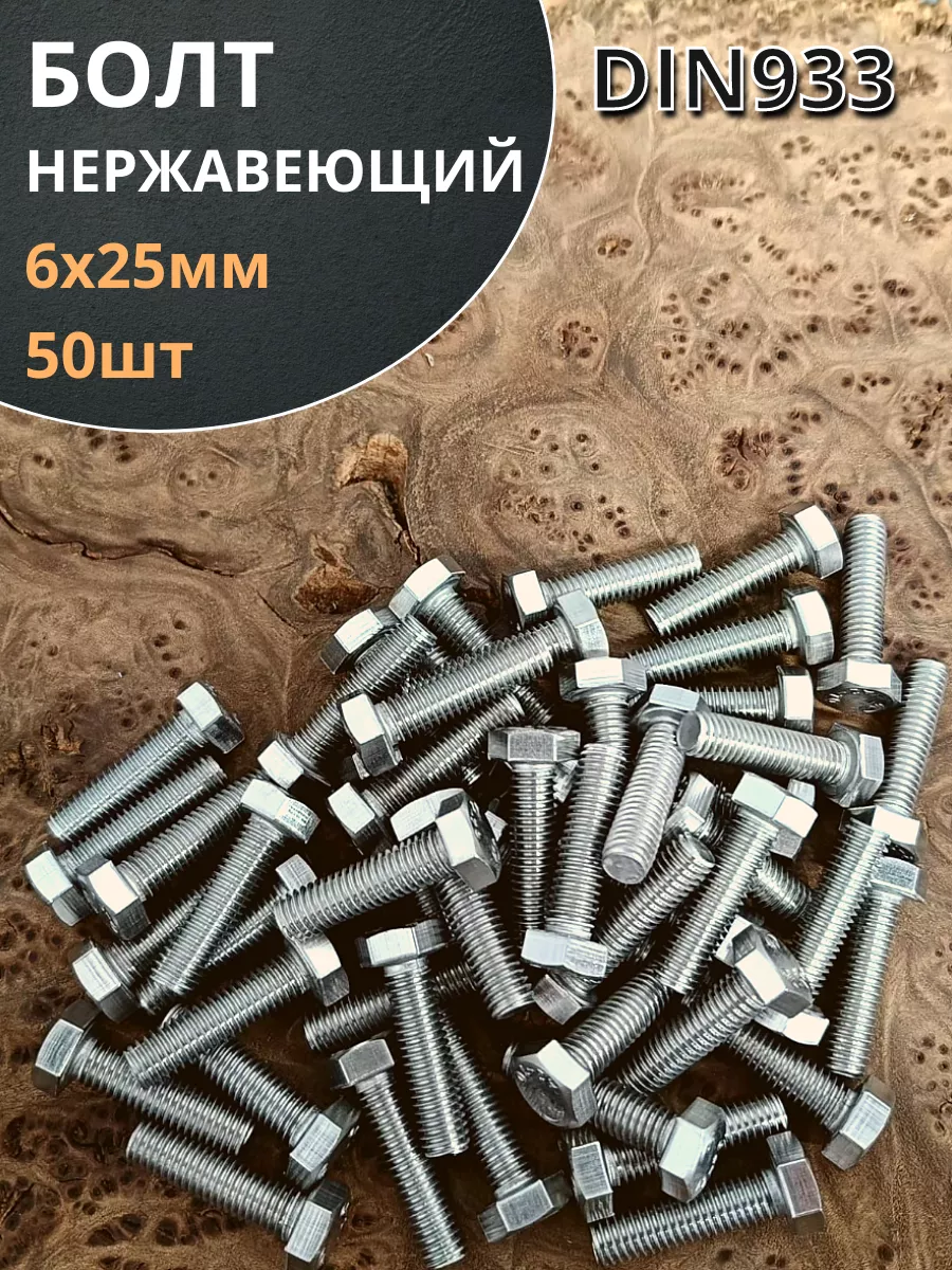 Болт нержавеющий 6х25 мм DIN933 50шт