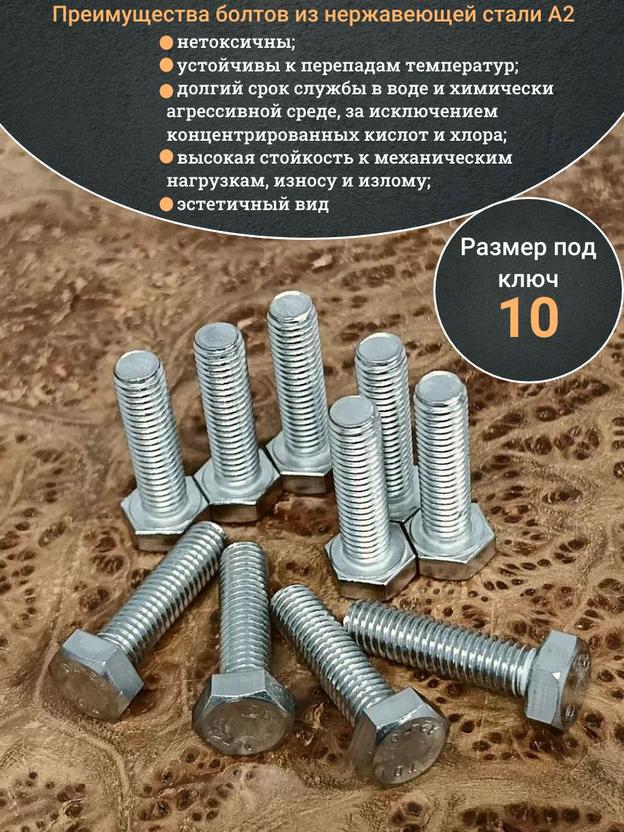 Нержавеющая сталь данной марки повышает прочность болта, который выдерживает динамические усилия и вибрацию. Изделие монтируют в помещениях и вне их. Крепеж имеет практически неограниченный ресурс работы, на который не влияет воздействие воды и изменений температуры воздуха.