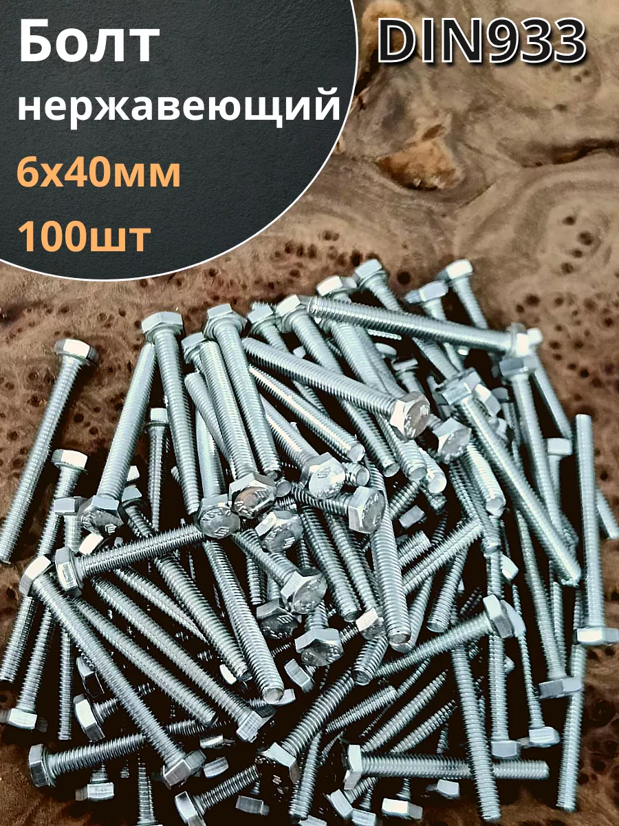 Болт нержавеющий 6х40 мм DIN933 100шт