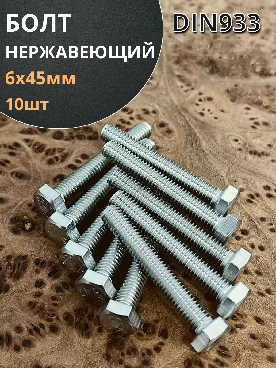 Болт нержавеющий 6х45 мм DIN933 10шт