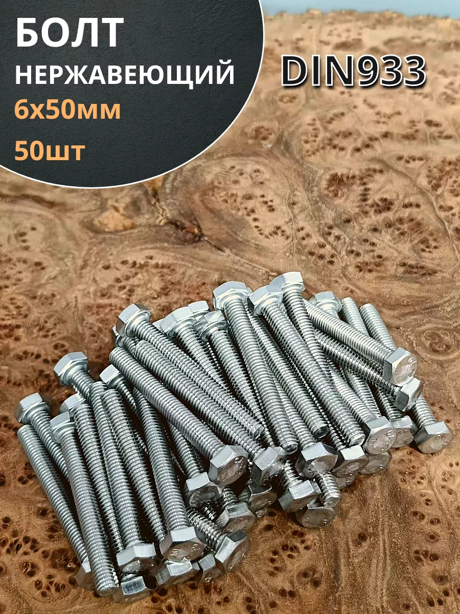 | Болт нержавеющий 6х50 мм DIN933 50шт | АС1300605092G07ф50 | 1 шт. |