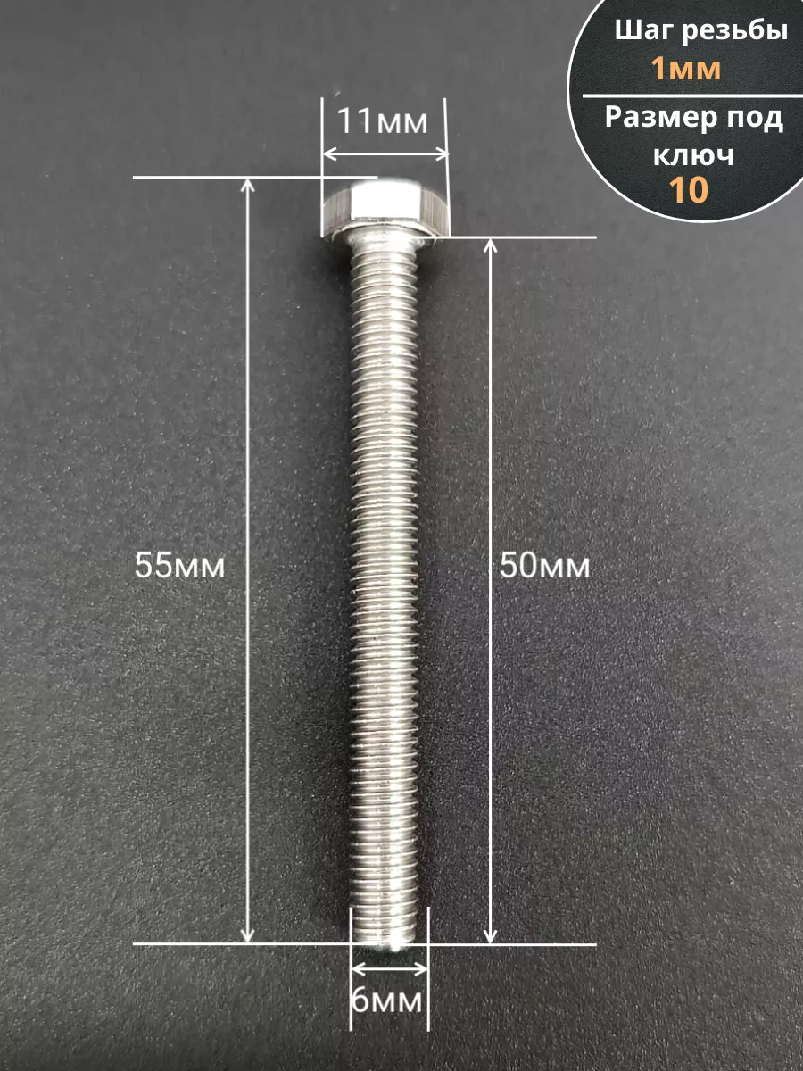 | Болт нержавеющий 6х50 мм DIN933 10шт | АС1300605092G07 | 1 шт. |