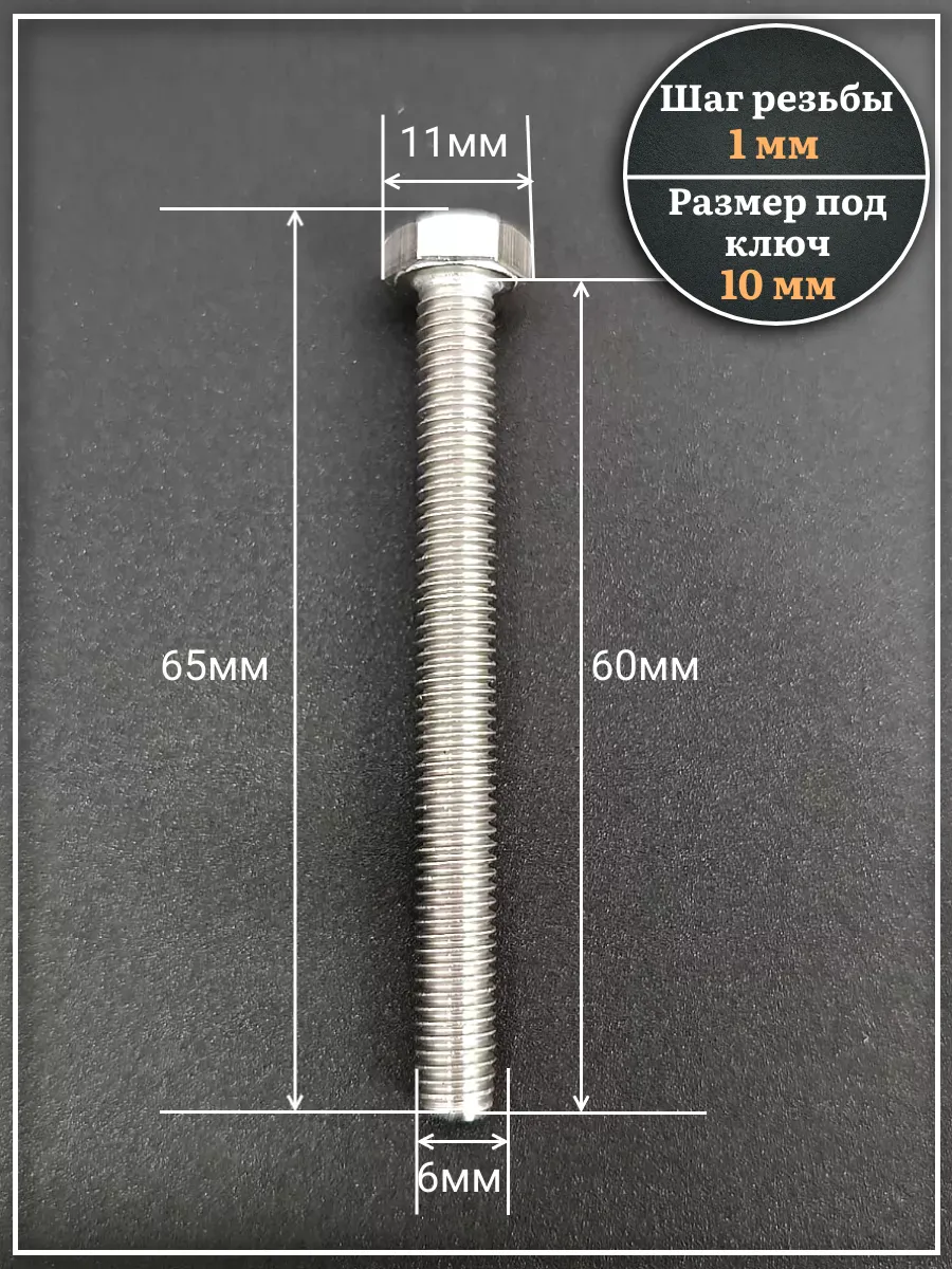 | Болт нержавеющий 6х60 мм DIN933 10шт | АС1300606092G07 | 1 шт. |