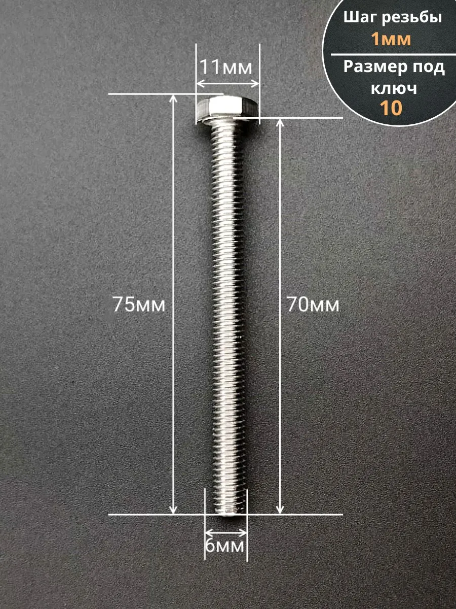 | Болт нержавеющий 6х70 мм DIN933 10шт | АС1300607092G07 | 1 шт. |