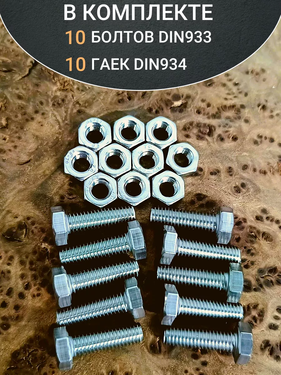 Болт нержавеющий М3х20 мм DIN 933 с гайкой , 10 шт.