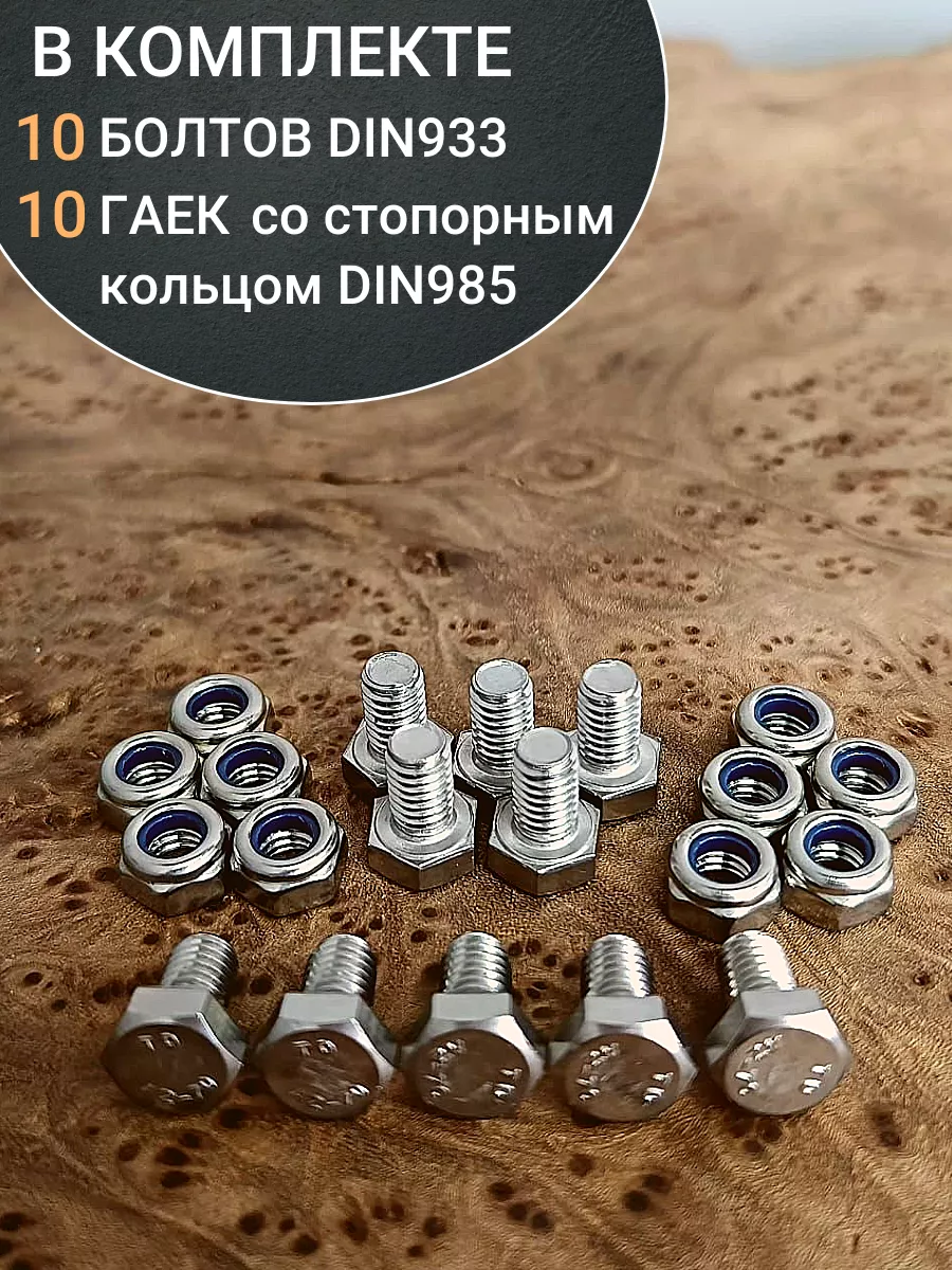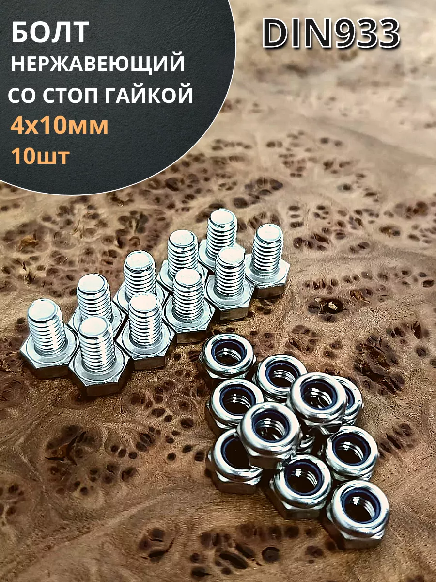 Болт нержавеющий М4х10 мм DIN 933 с гайкой , 10 шт.