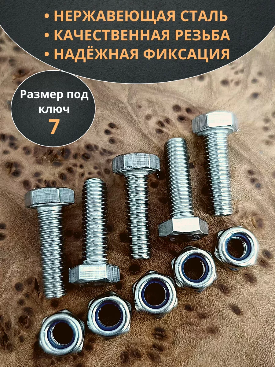 Болт нержавеющий М4х16 мм DIN 933 с гайкой , 10 шт.