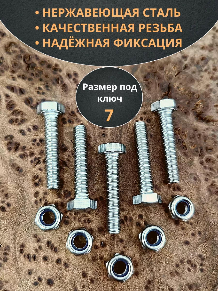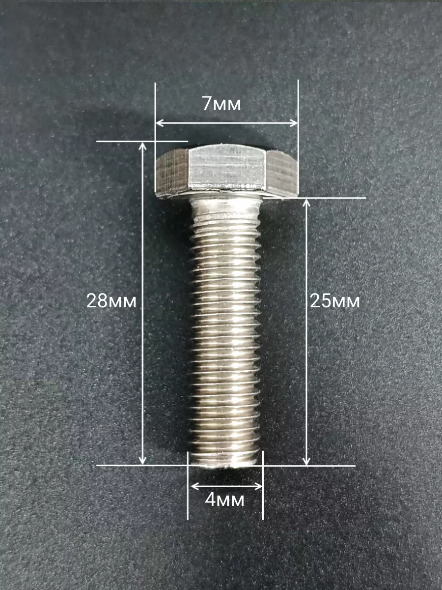 Болт нержавеющий М4х25 мм DIN 933 с гайкой , 10 шт.