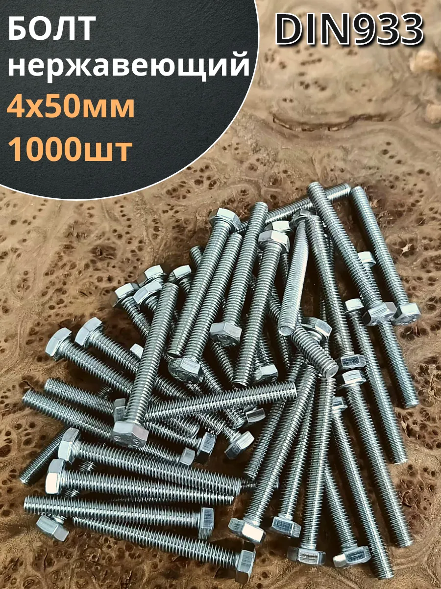Болт нержавеющий М4х50 мм DIN 933, 1000 шт.