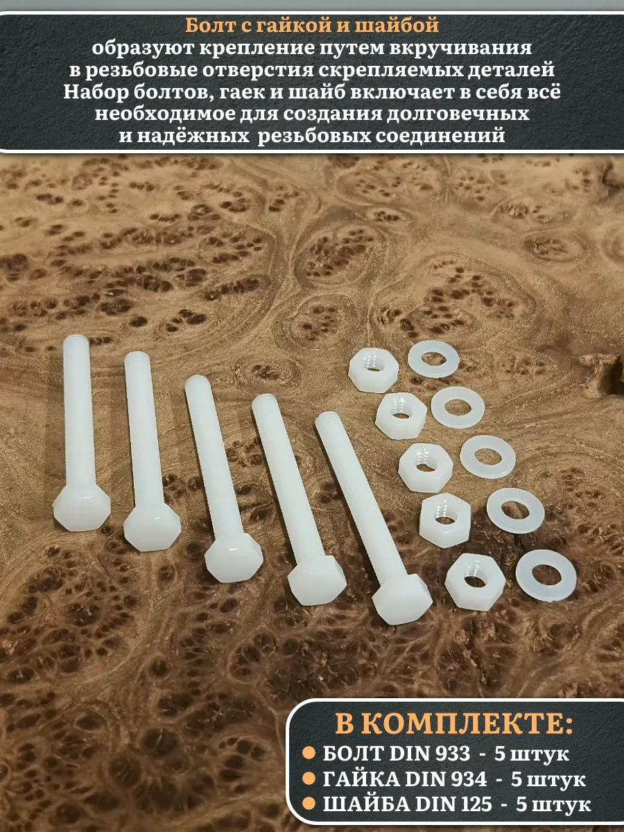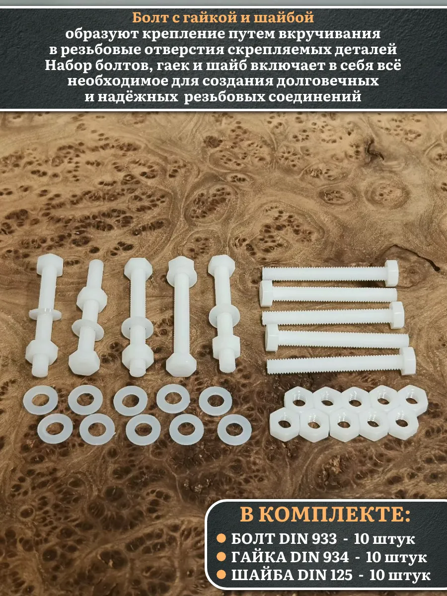 Болт полиамидный 6х50 мм DIN 933 с гайкой и шайбой