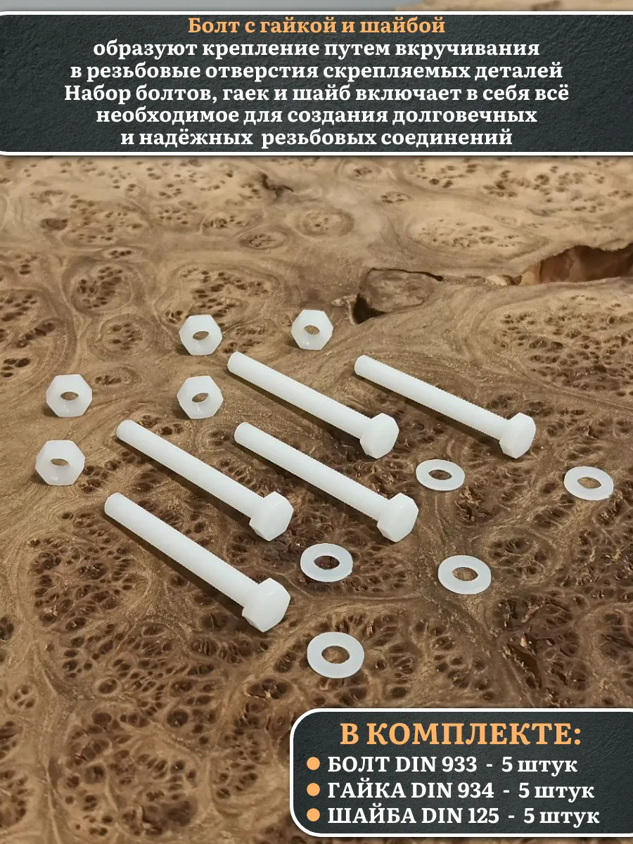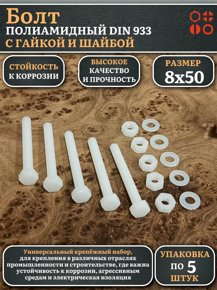 | Болт полиамидный 8х50 мм DIN 933 с гайкой и шайбой, по 5 шт. | бп850933наборГШф5 | 1 шт. |
