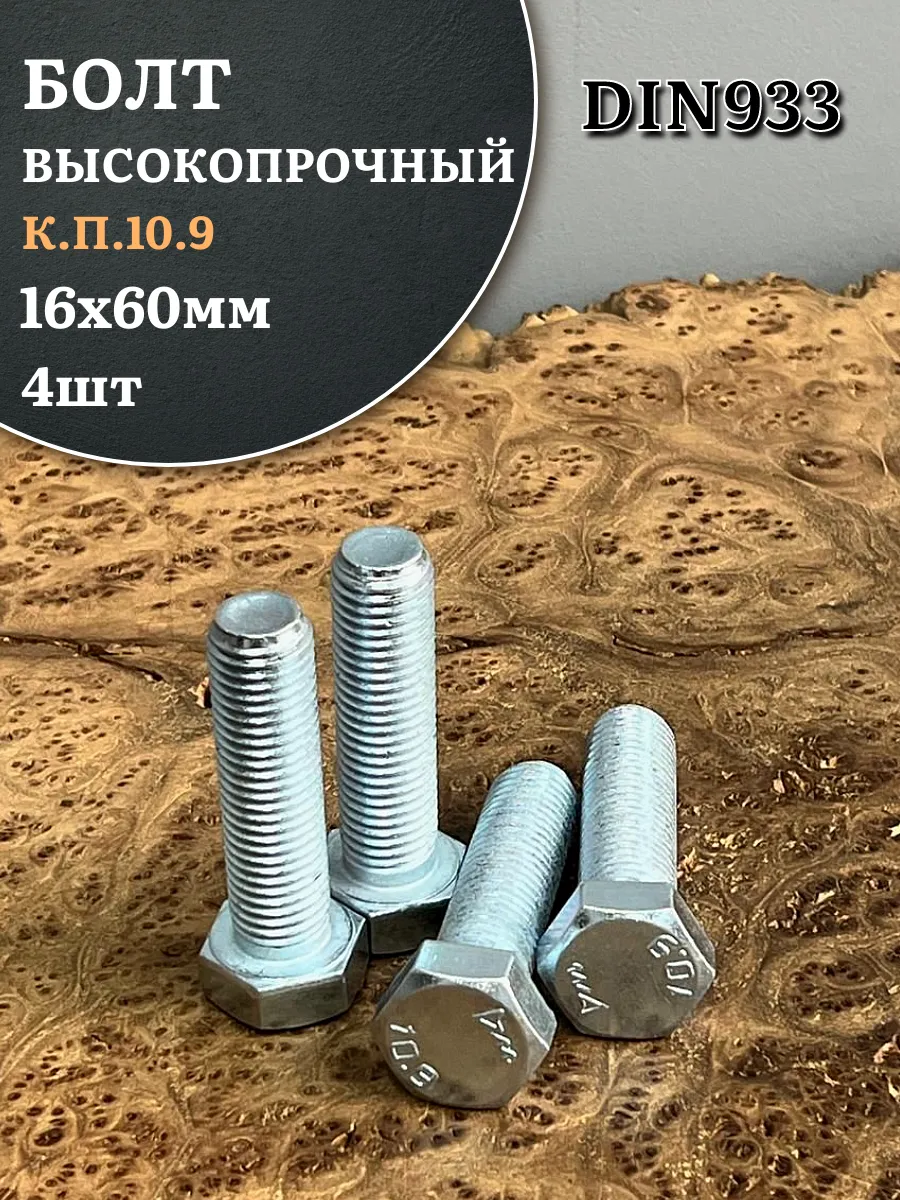 Болт высокопрочный ОЦ 16х60 мм, к.п.10.9 DIN933, 4 шт.