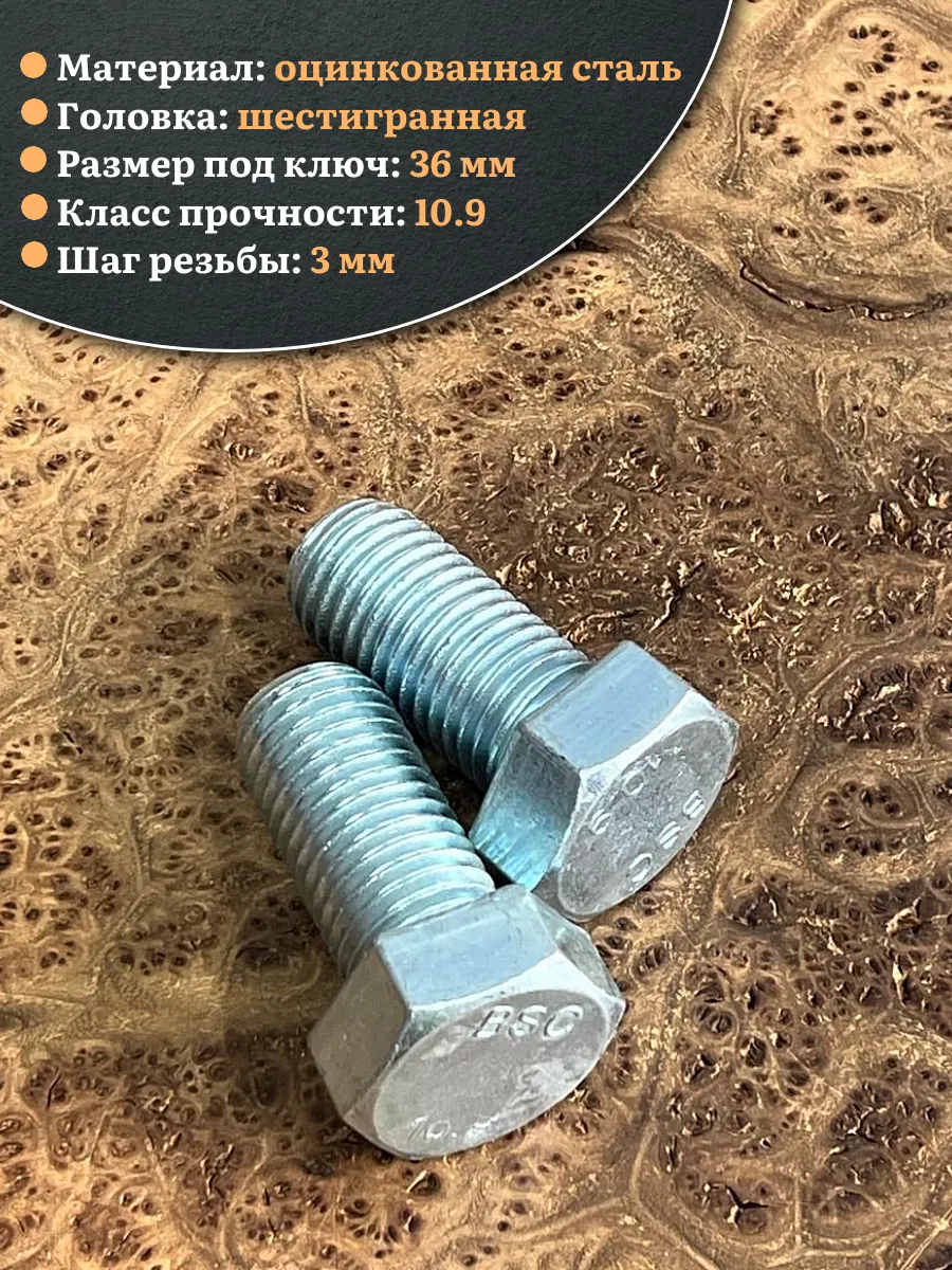 Болт высокопрочный ОЦ 24х50 мм, к.п.10.9 DIN933, 2 шт.