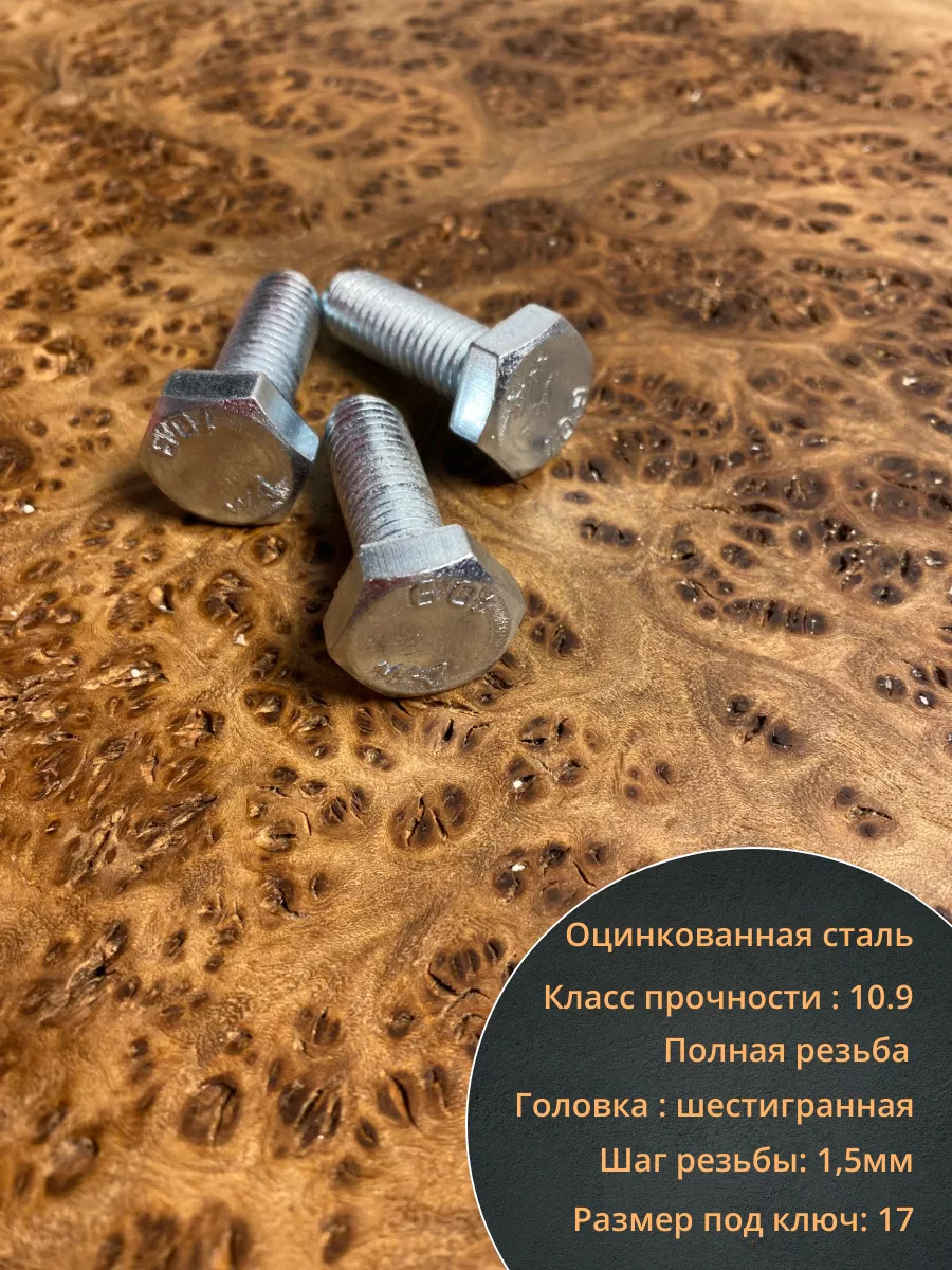Применяется совместно с гайками и шайбами в машиностроении, строительстве, мебельной промышленности и прочее. Имеет шпильку с полной резьбой и шестигранную голову. Длина болта определяется по длине шпильке.Самый распространенный вид болтов применяется совместно с гайками и шайбами. Материал основания: Метал, дерево