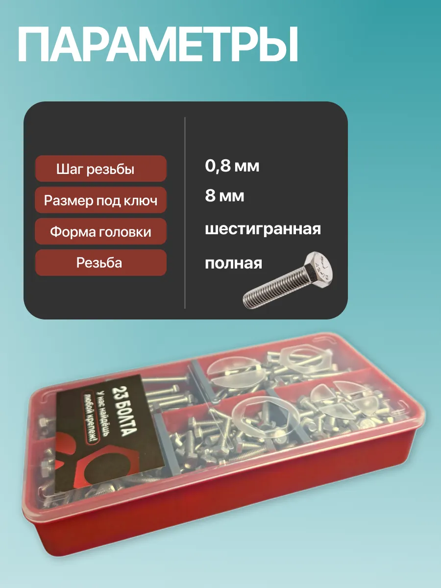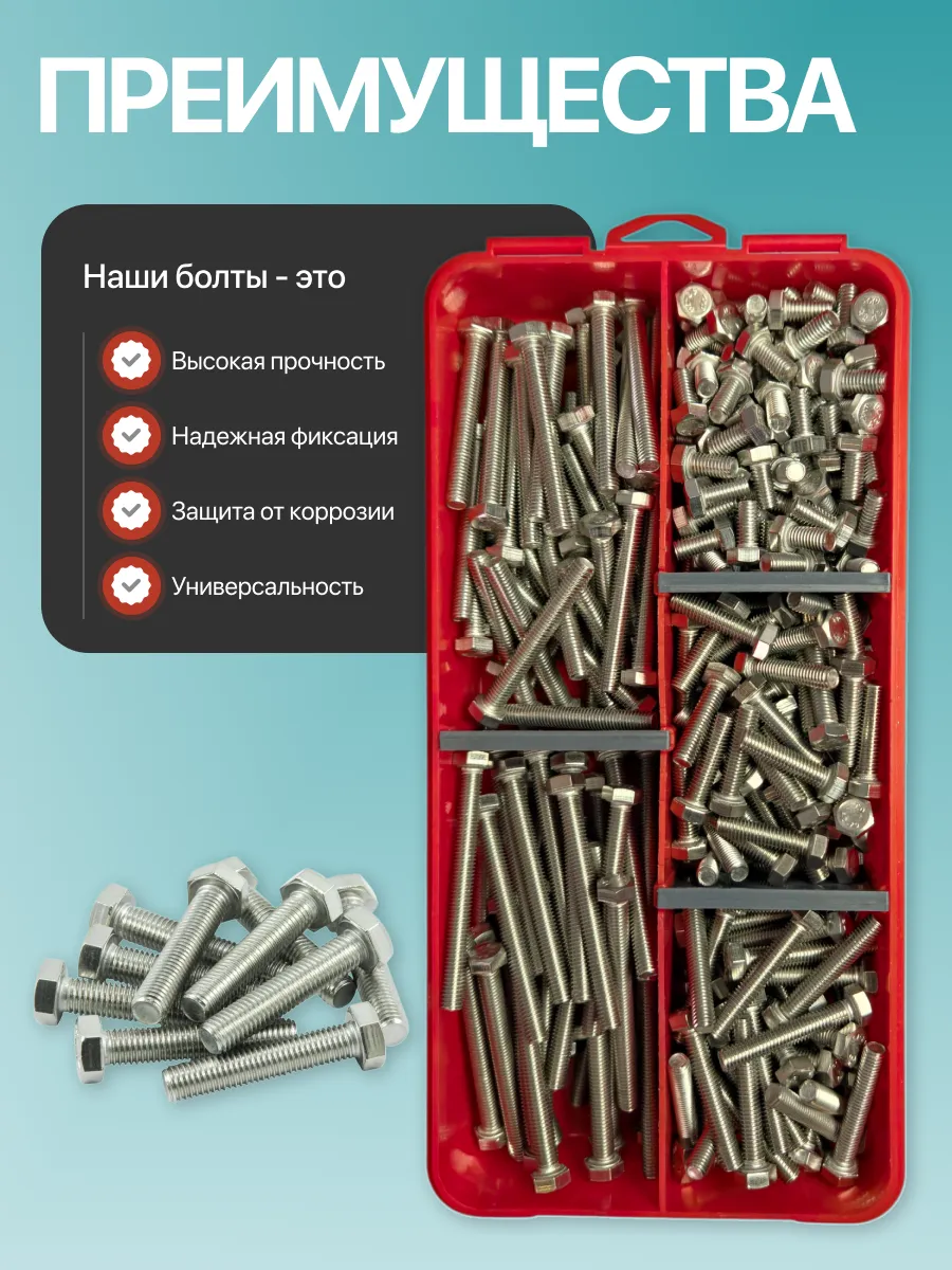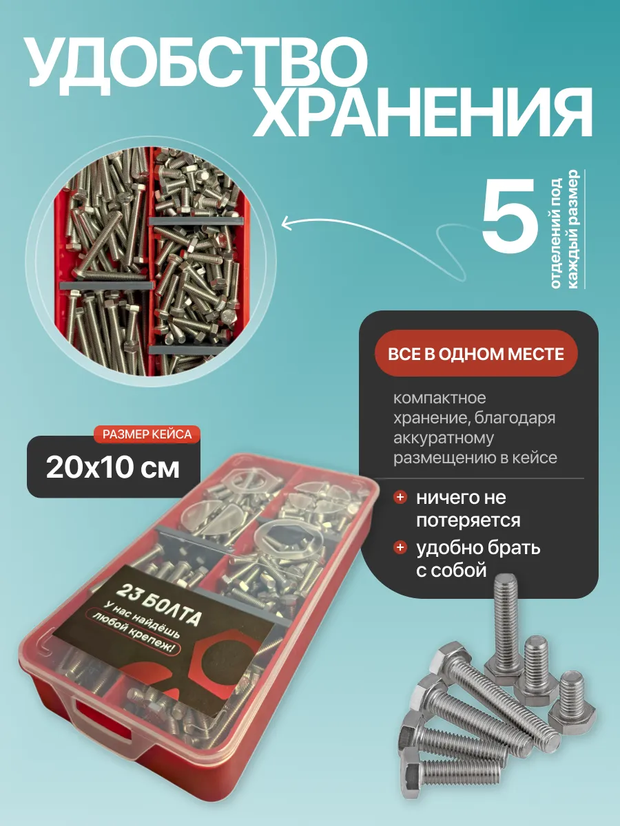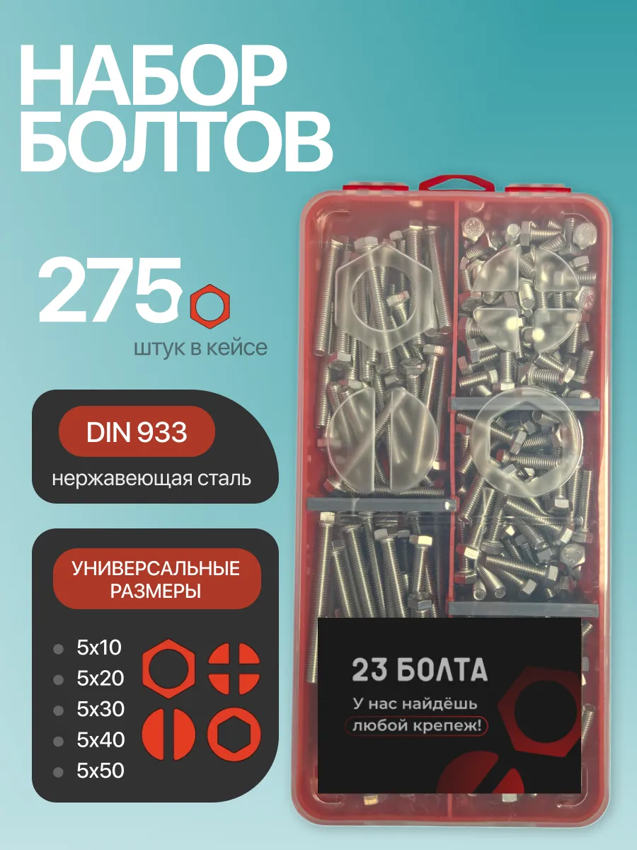 Болты нержавеющие М5 DIN933 в органайзере НАБОР 2