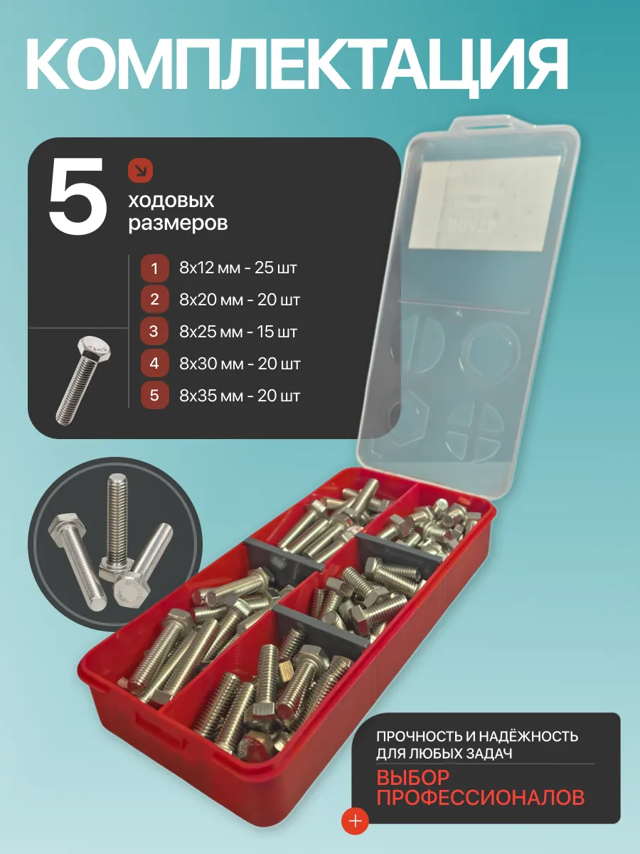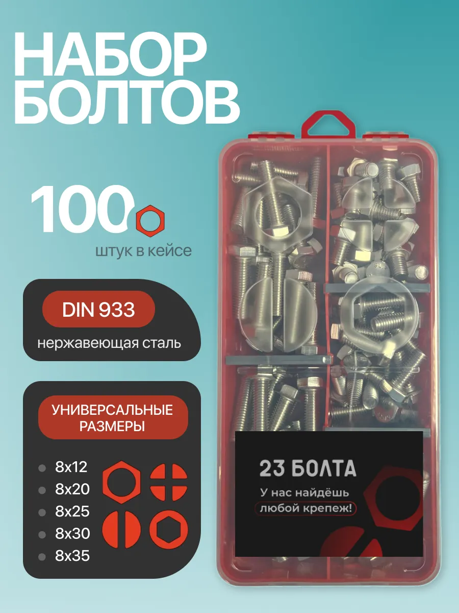 Болты нержавеющие М8 DIN933 в органайзере НАБОР 1