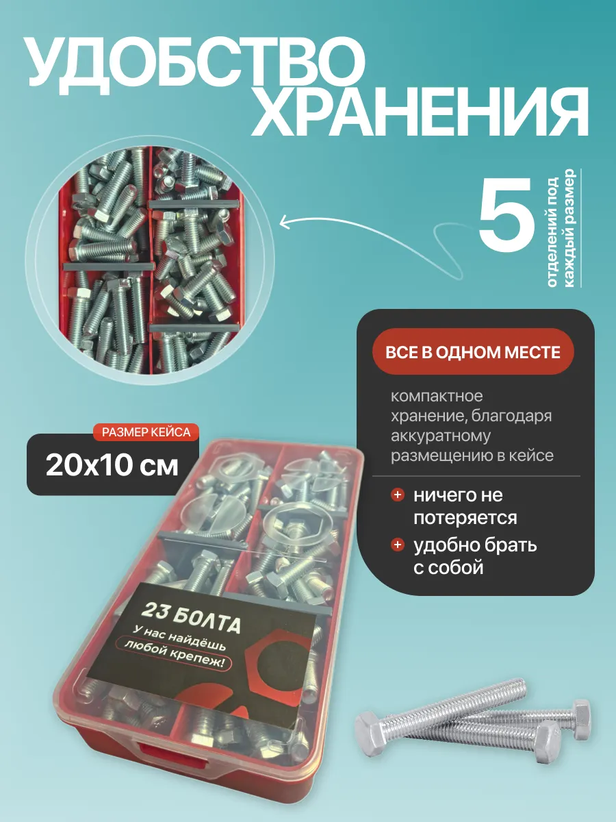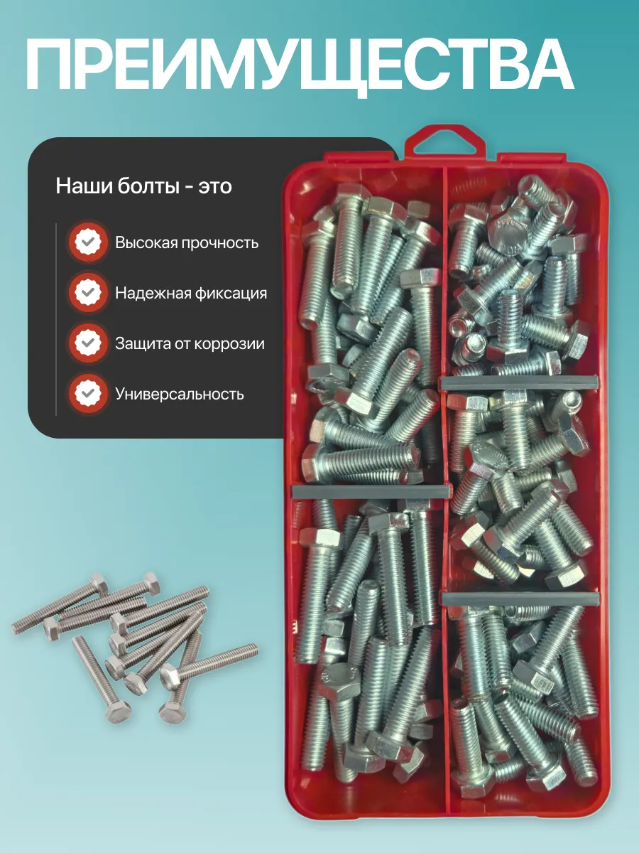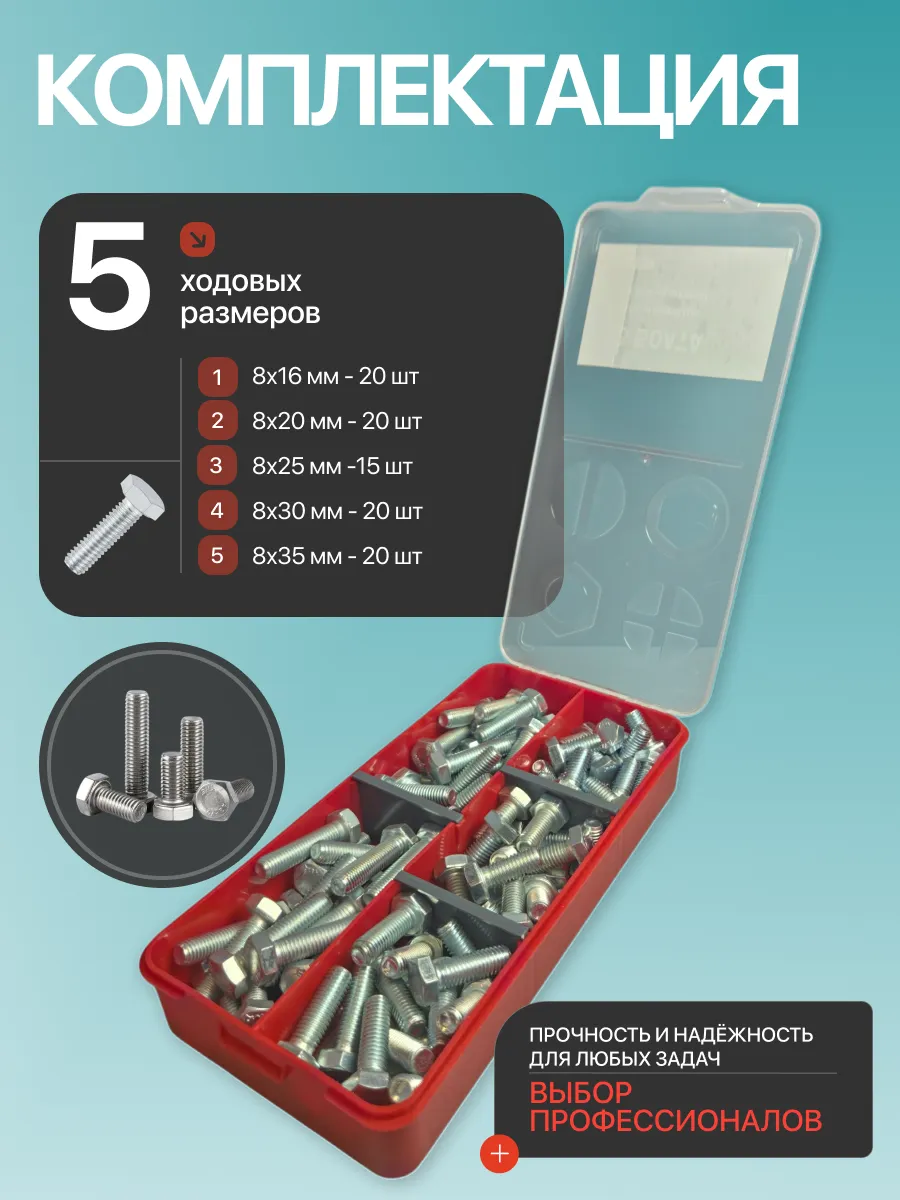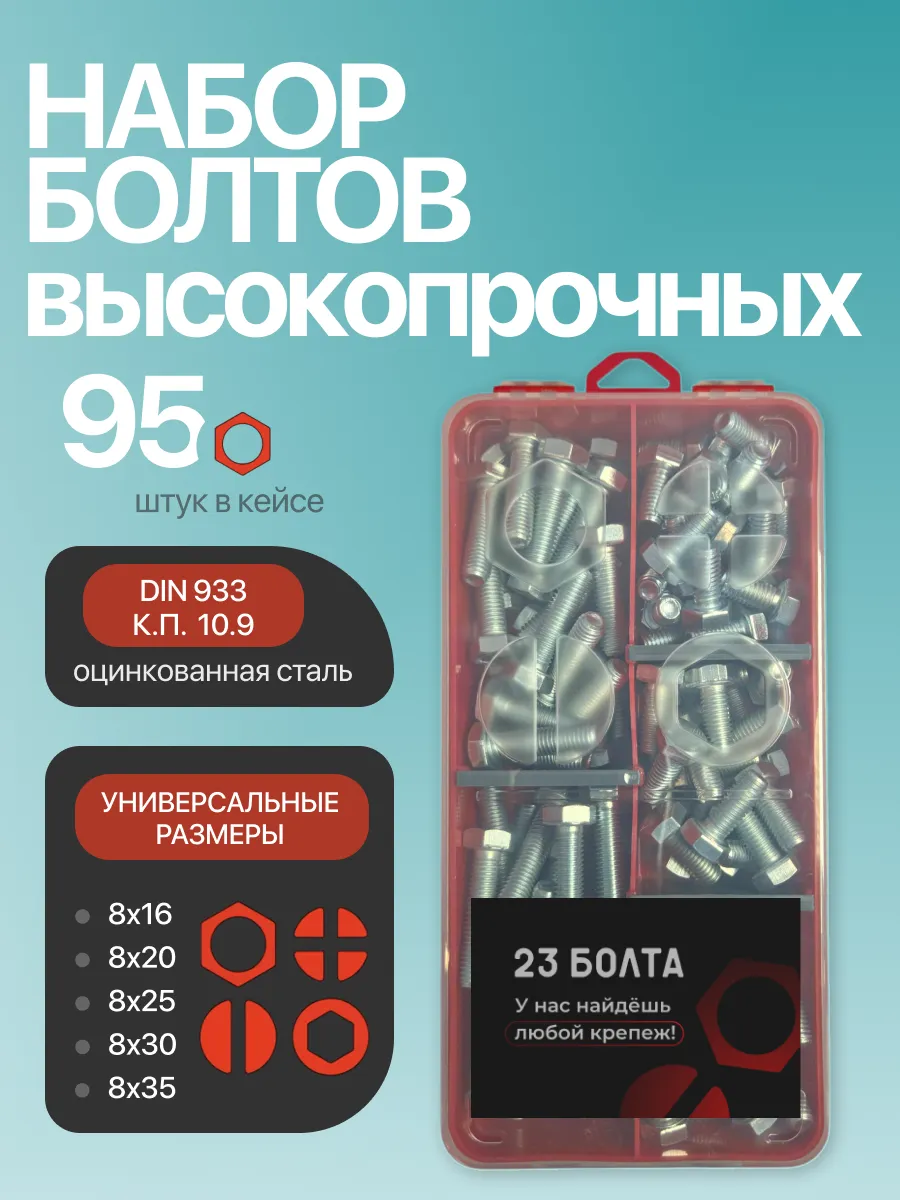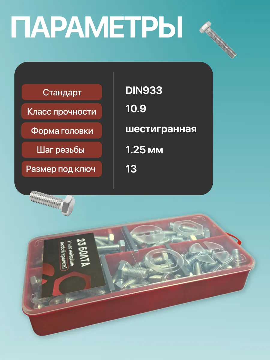 Болты высокопрочные М8 ОЦ к.п.10.9 DIN933 органайзер НАБОР 1
