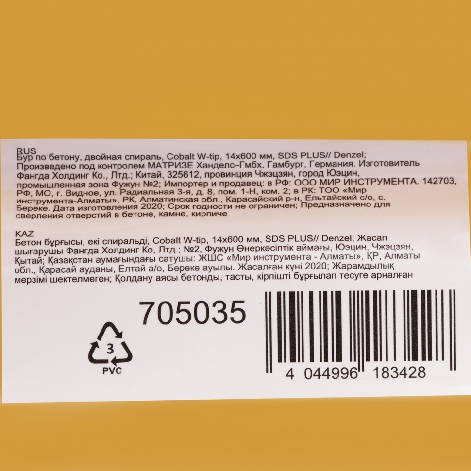 Бур по бетону Cobalt W-tip, двойная спираль, SDS-Plus, 14х600 мм Denzel