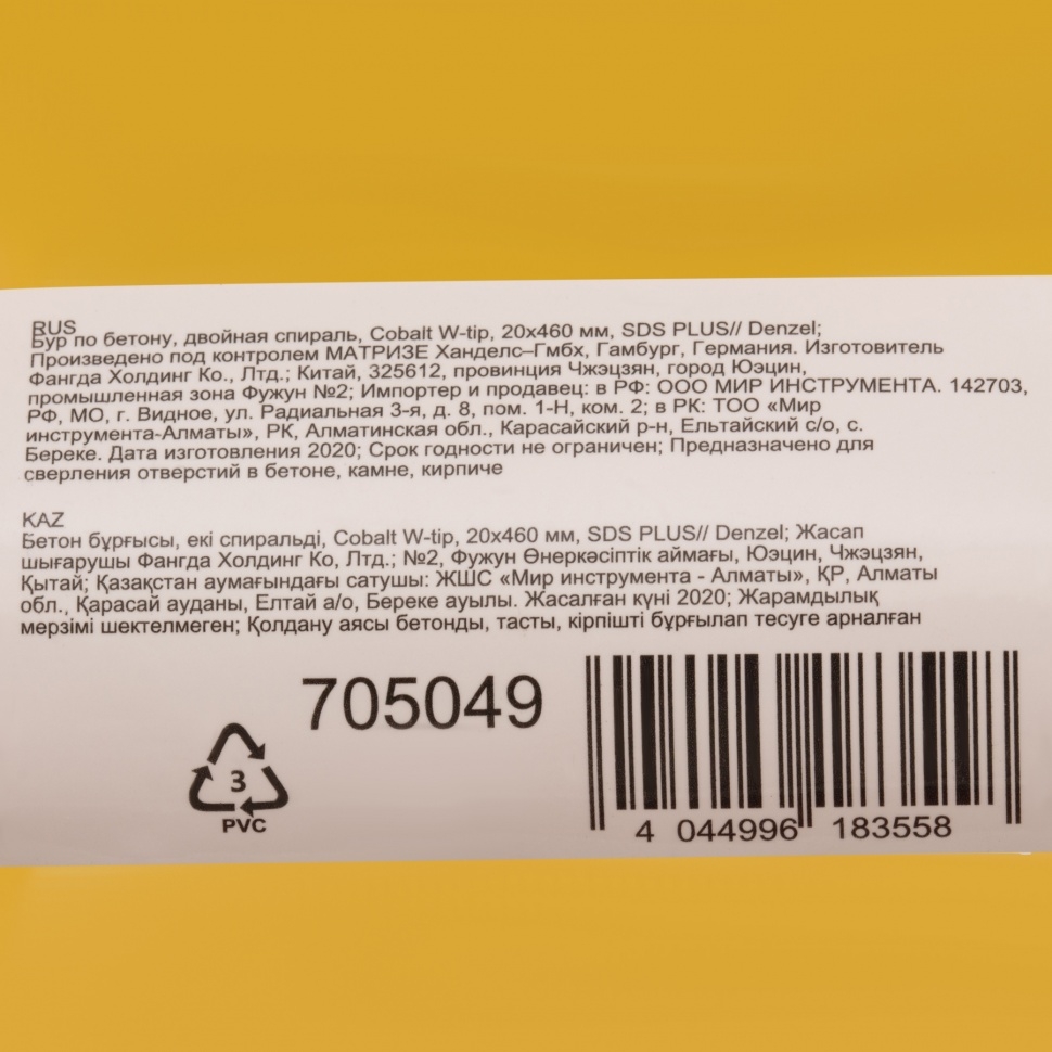 Бур по бетону Cobalt W-tip, двойная спираль, SDS-Plus, 20х460 мм Denzel