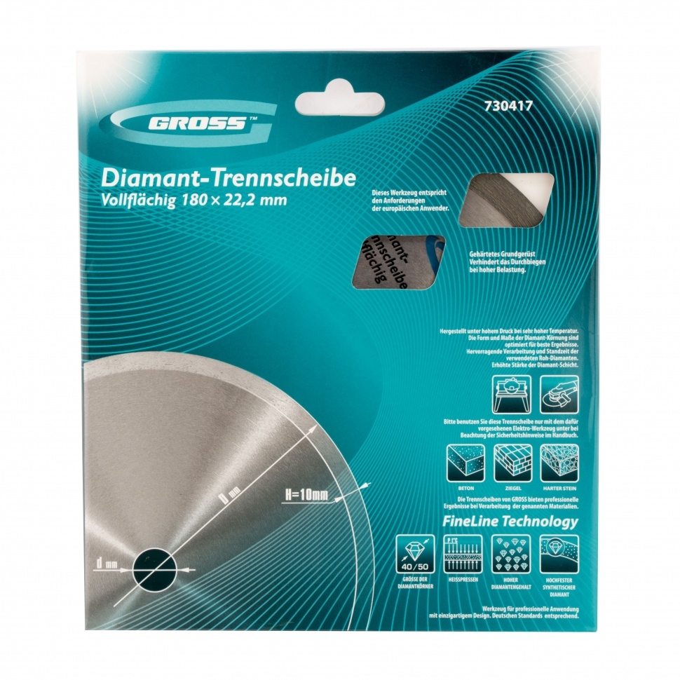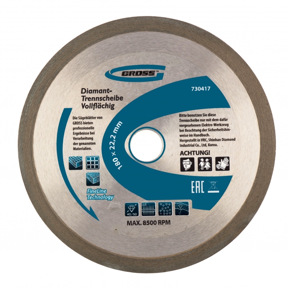 | Диск алмазный сплошной мокрое резание 180х22,2 мм Gross | 730417 | 1 шт. |