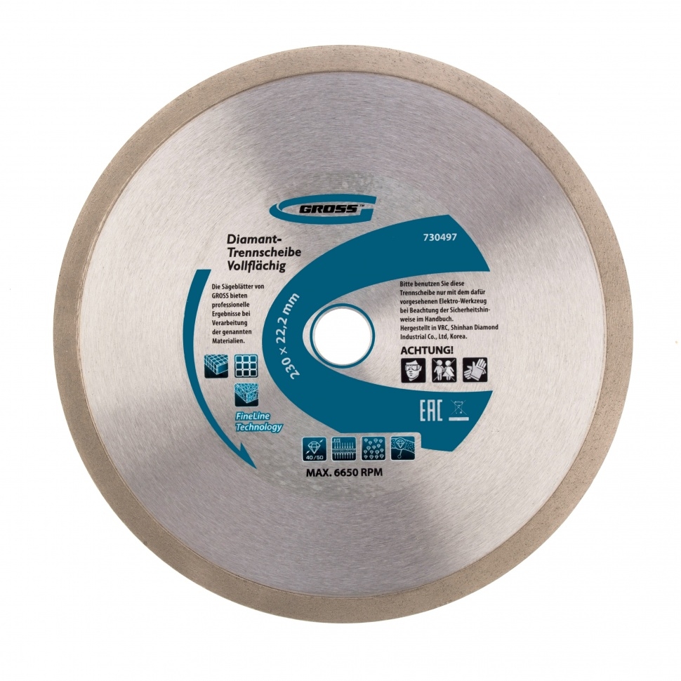 | Диск алмазный сплошной мокрое резание 230х22,2 мм Gross | 730497 | 1 шт. |