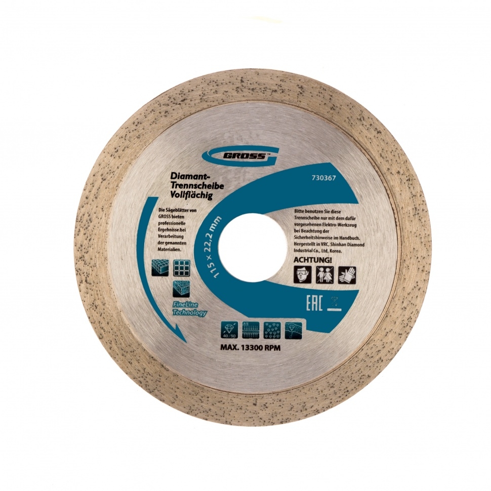 | Диск алмазный сплошной мокрое резание 115х22,2 мм Gross | 730367 | 1 шт. |